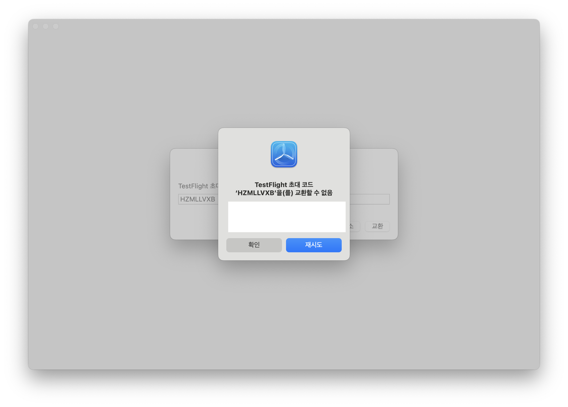 TestFlight 초대 메일을 받고 코드 입력을 시도하는데 계속 실패하고 있어 문의드립니다.
