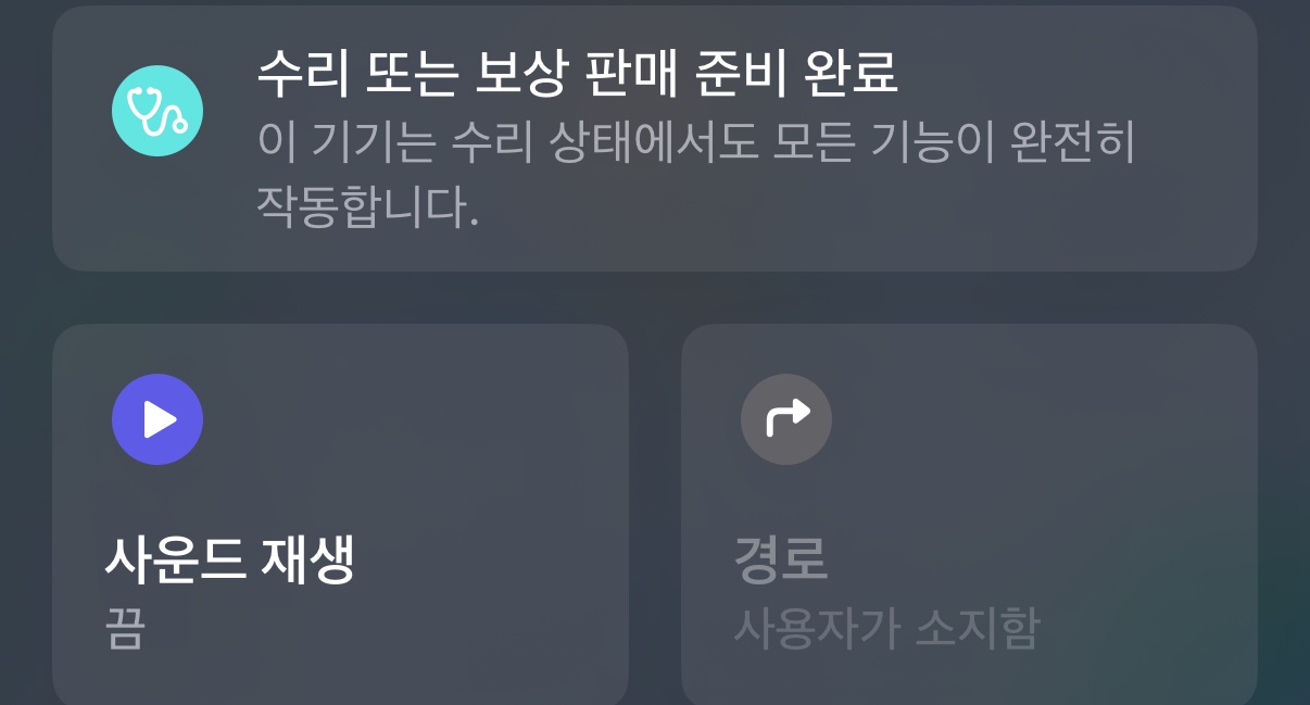 해당 기능은 기기를 수리 맡길때 '나의 찾기' 기능을 비활성화할 필요 없이 활성 상태로 유지하도록 해줍니다. 이 메시지는 현재 기기가 '수리 상태'임을 보여주는 상태표시라 이것만 끄는 기능은 없습니다.