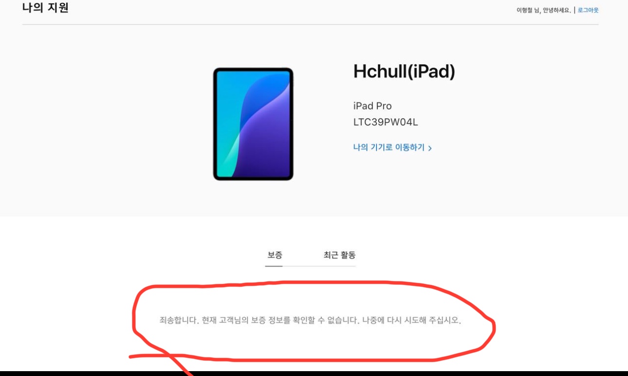 애플 공식홈페이지에서 구매했는데 보증 기간 확인이 안되네요 일련번호 검색도 안되고