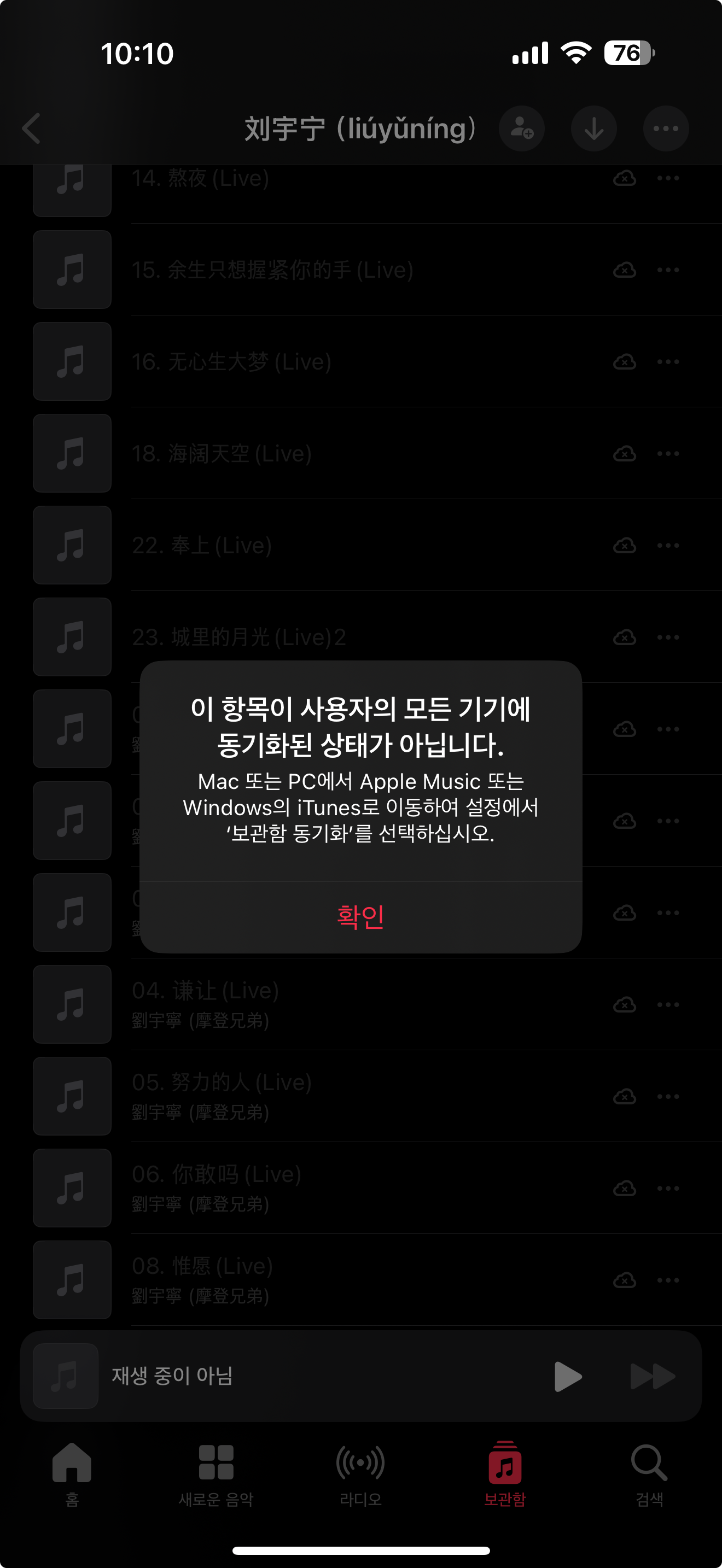 불과 몇일전만해도 다운받은 음원동기화가됐는데 이렇게되는 이유가 먼지 아시나요?