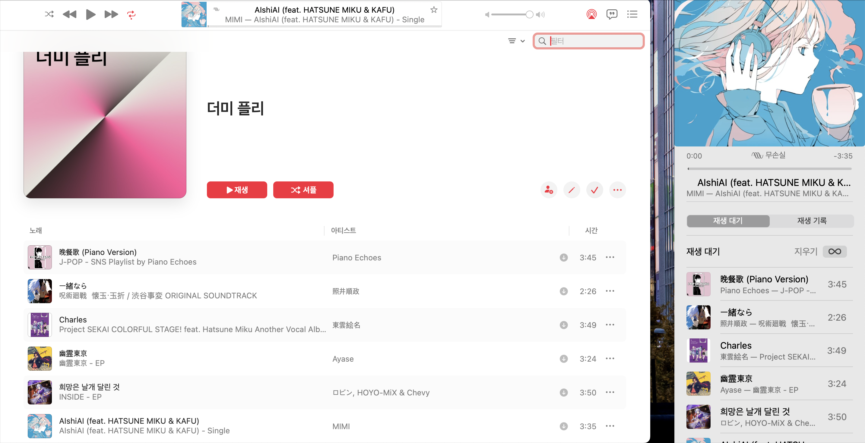 미니 플레이어에서 재생 목록을 확인할 수 있는데