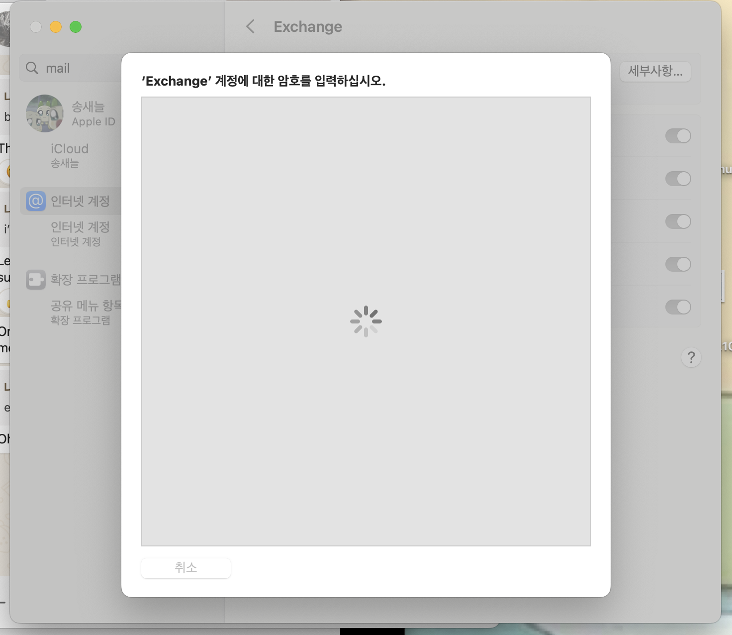 현재 outlook 계정을 사용해 이메일을 쓰고있는데, 2월을 마지막으로 메일이 오지 않기 시작하더니 보내기도 안되고 계속 연결중이라는 상태만 떠서 계정을 삭제하고 다시 로그인 하려고 하니까 저런 창에서 계속 넘어가질 않습니다.