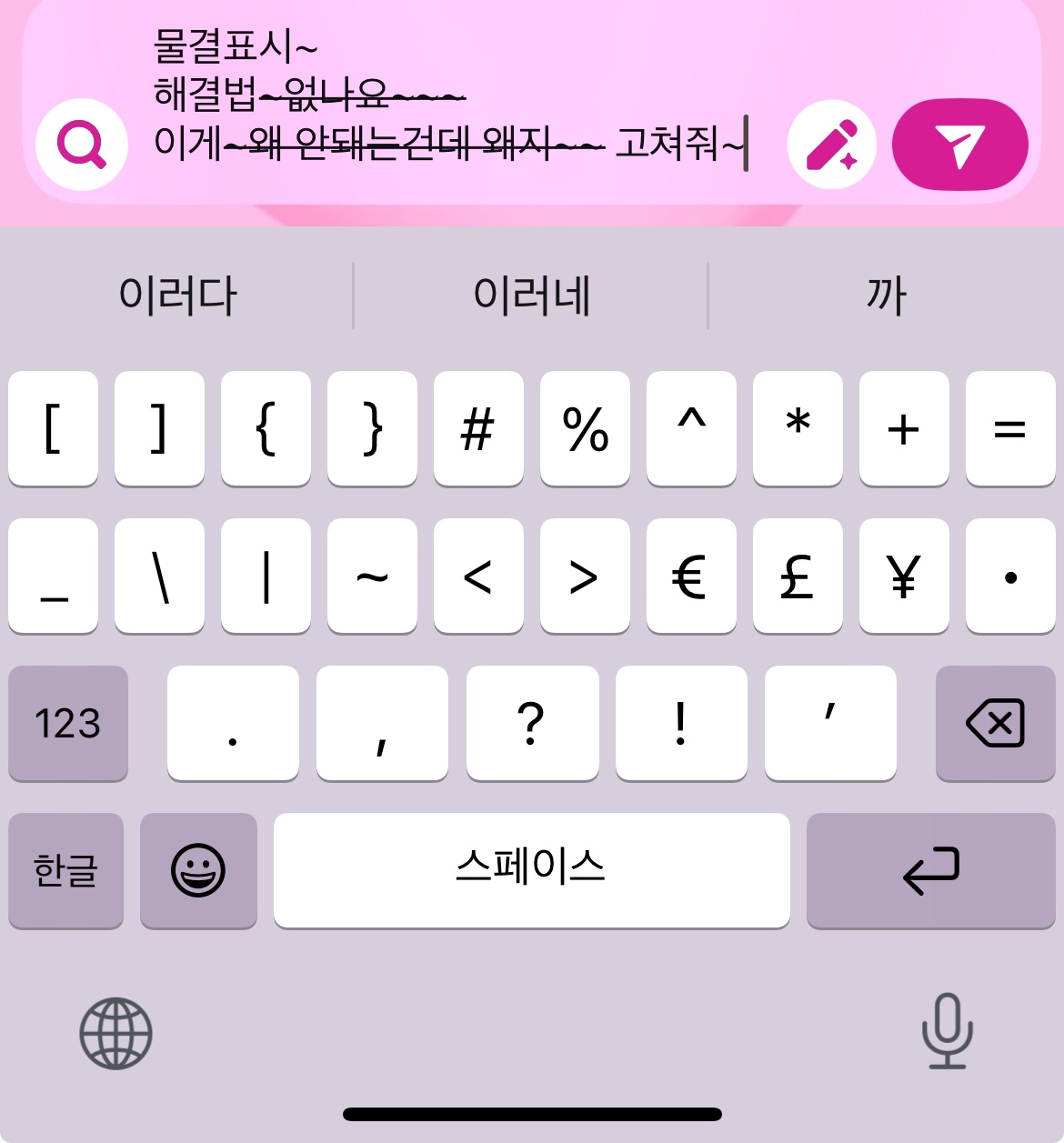 아이폰 물결표시 ~ 두번이상 사용시 자동으로 직선으로 바뀌는 현상