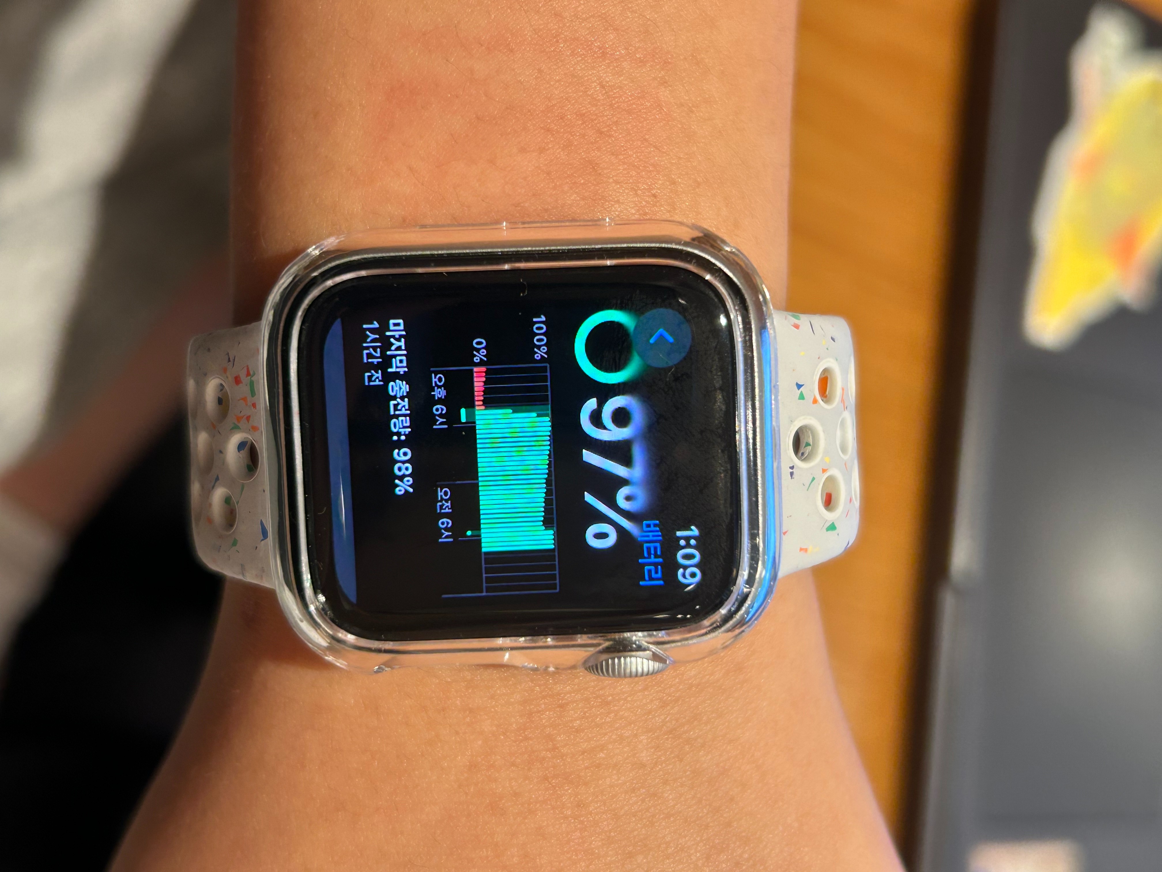 16일에 워치 se가 배송된 후 배터리를 100으로 충전 시킨 뒤 충전기를 뽑고 자면 아침에 80까지 닳아있습니다.