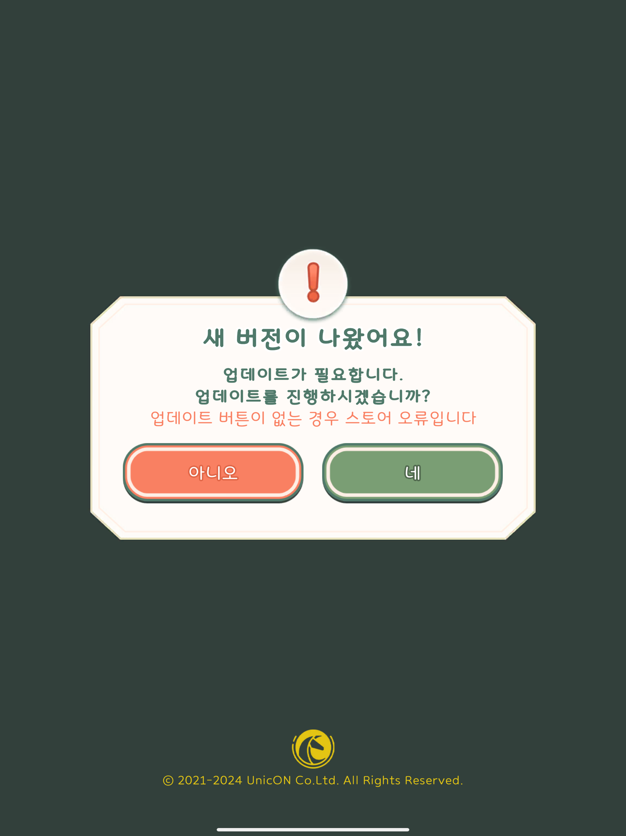 게임을 다운받고 실행하면 업데이트를 하라는 창이 나오는데, 막상 ‘네’라는 버튼을 눌러도 앱스토어로 이동하지 않고, 앱스토어에서 직접 업데이트를 해보려고 해도 업데이트 버튼이 아닌 열기 버튼만 있습니다. 게임을 지웠다 재설치해도, 앱스토어 로그아웃 후 재로그인을 해도 고쳐지지 않습니다.