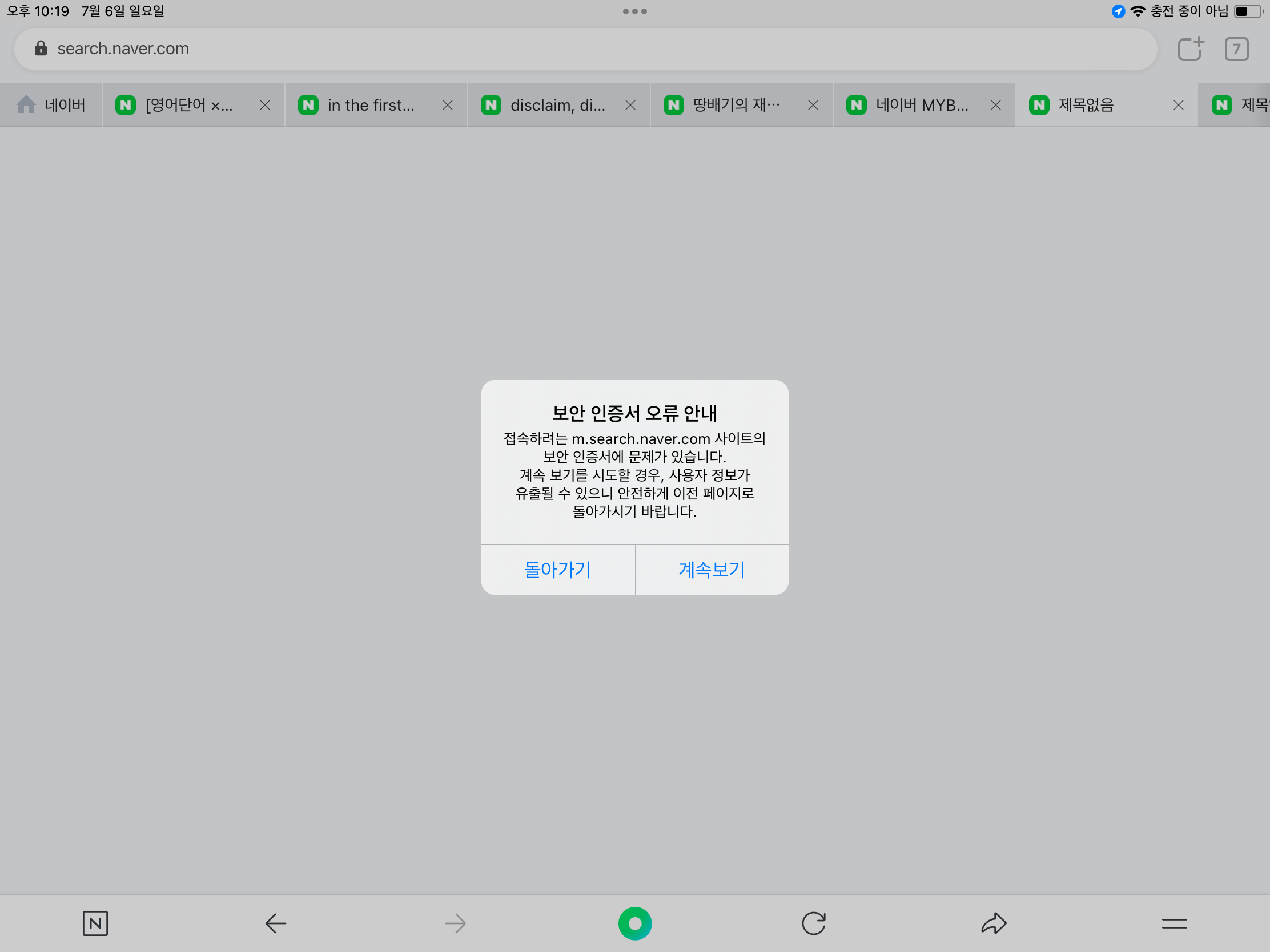 오늘 소프트웨어 업데이트를 해서 iPadOS 17.7.8 로 업그레이드 했는데 그 이후로 보안 인증서 오류 메세지가 계속 뜹니다