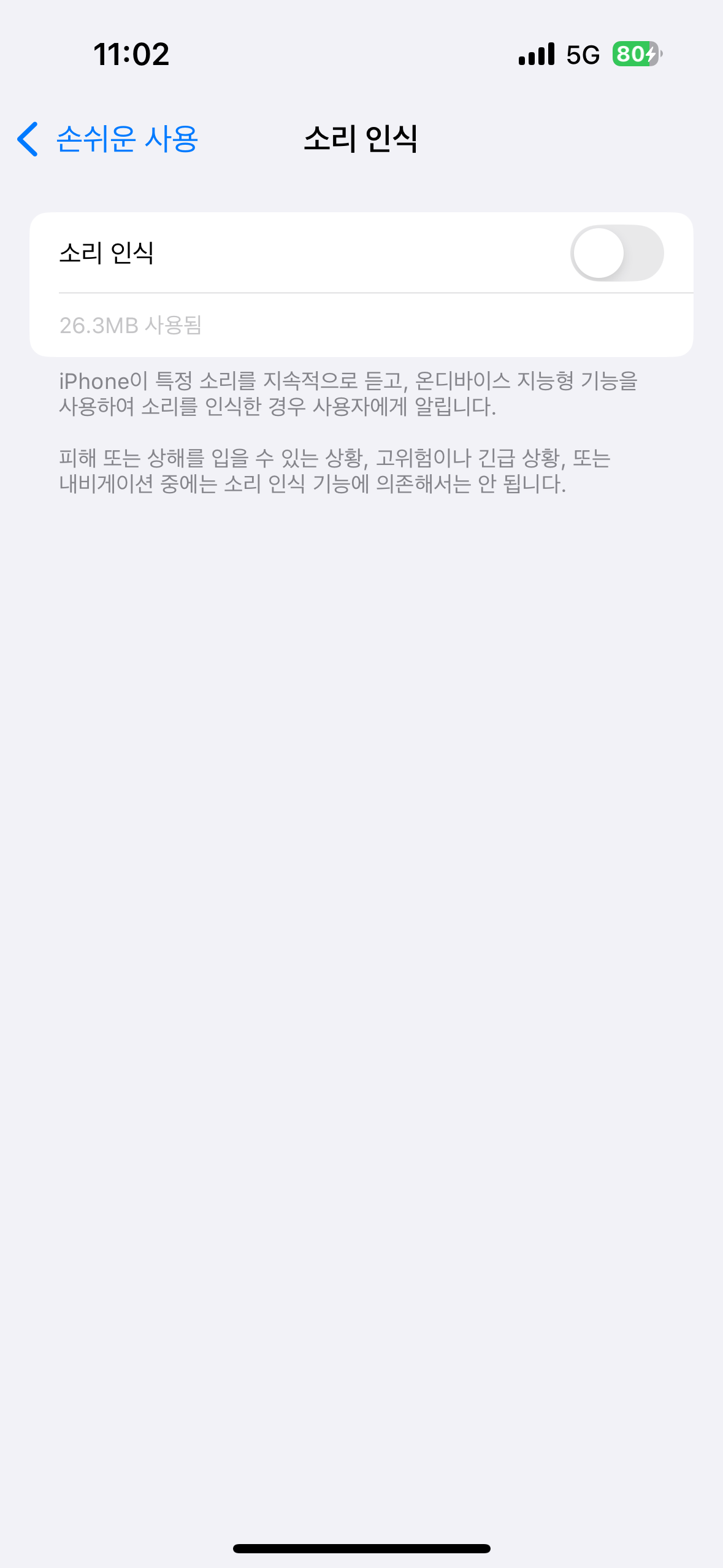 아이폰 소리인식 설정 메뉴 궁금해서 한번 켜봤다가 껐는데