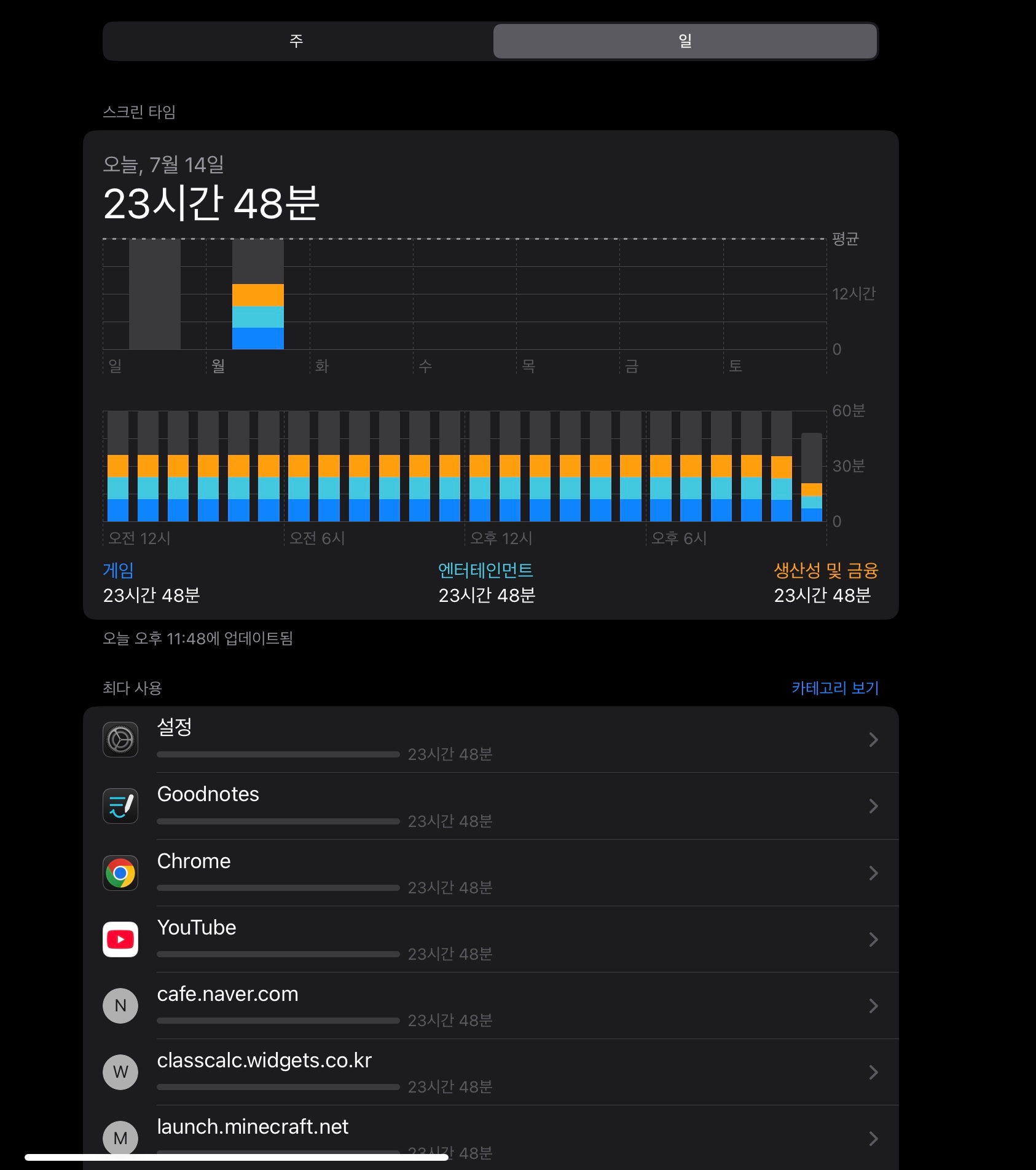 [관리자에 의해 제목과 내용이 수정 되었습니다.] 기존 제목: 스크린 타임 측정 오류