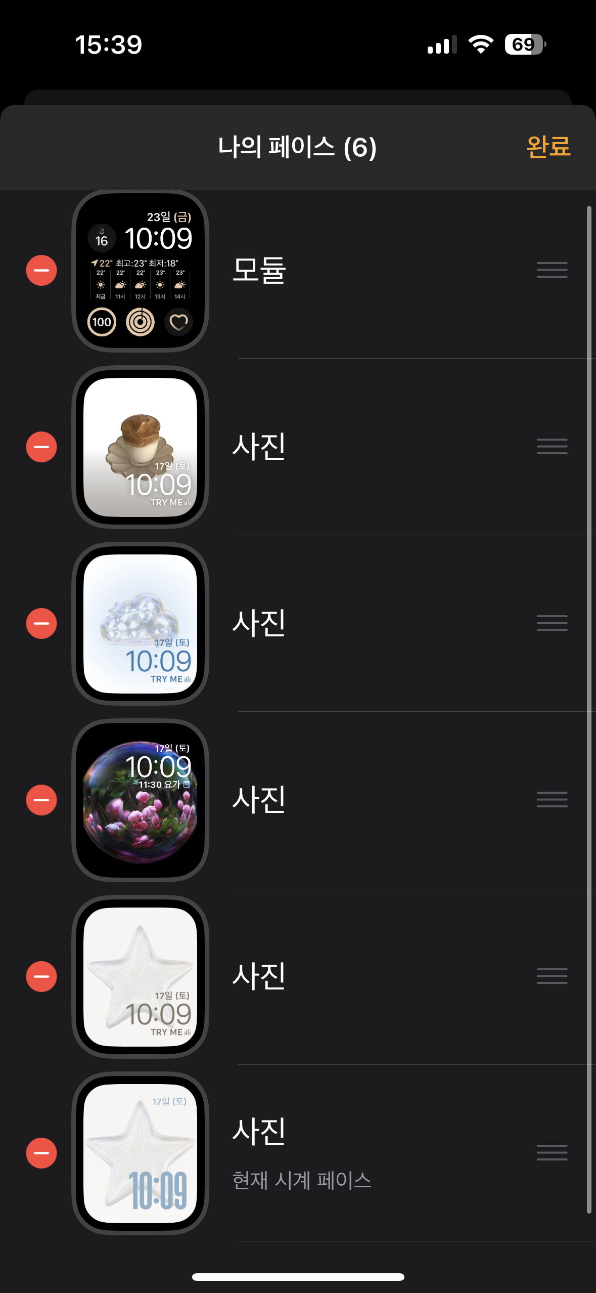 오랜만에 애플워치 페이스를 변경하려고 하는데