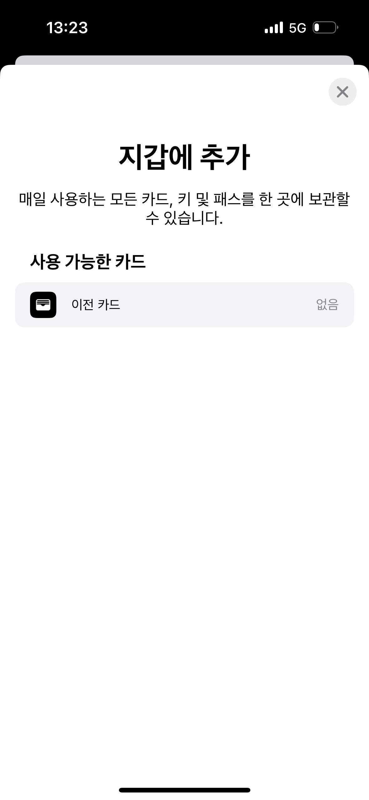[관리자에 의해 제목과 이미지가 편집되었습니다.] 기존 제목: 티머니 교통카드를 추가해야 하지만 Apple 지갑 앱에서 '추가하기'가 보이지 않음