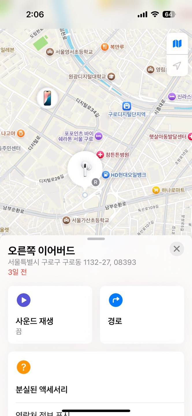 [관리자에 의해 제목과 이미지가 편집되었습니다.] 기존 제목: 아이폰 나의 찾기 앱으로 마지막 에어팟 연결 위치 업데이트 안됨