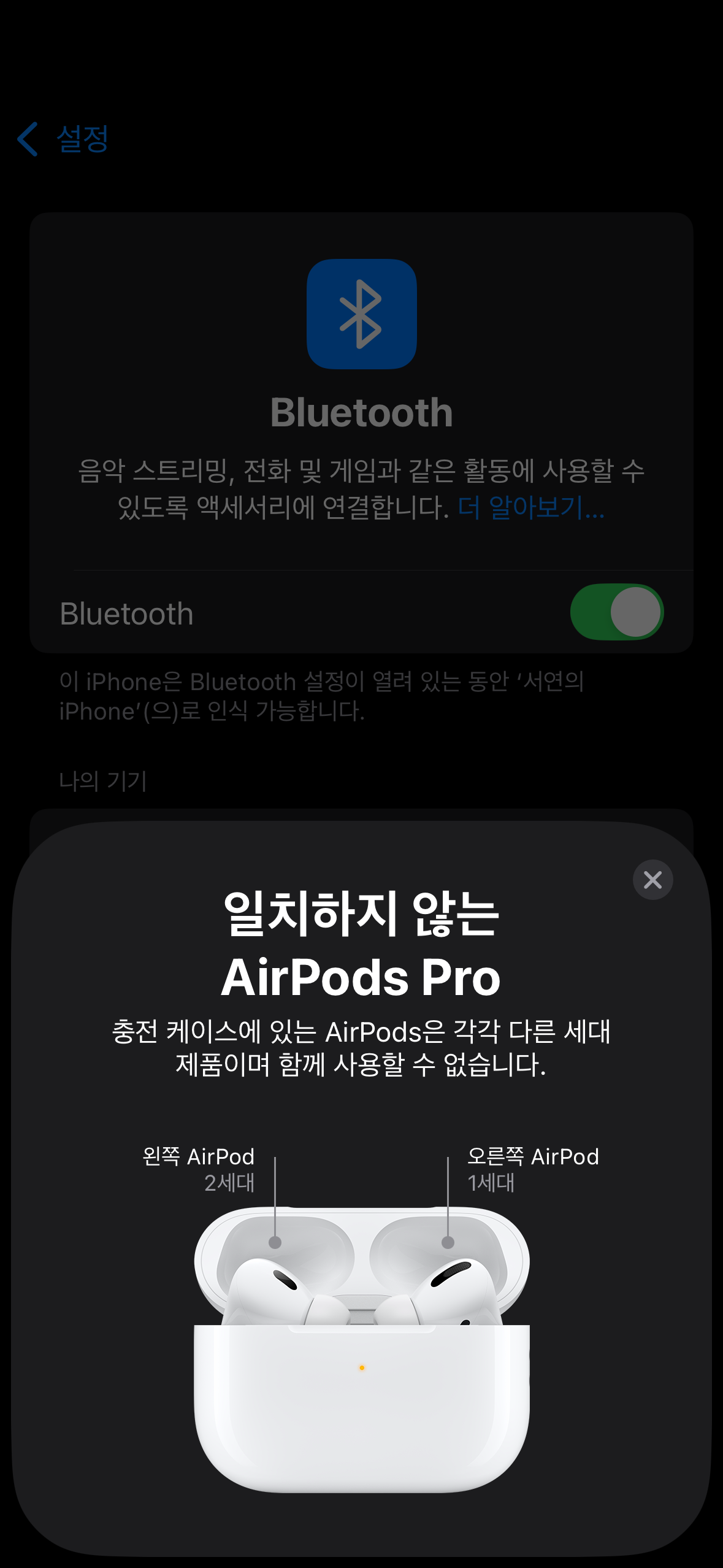 AirPods 유닛 구입 후 각각의 세대가 일치하지 않는 AirPods Pro라는 알림 뜨면서 연결 안됨