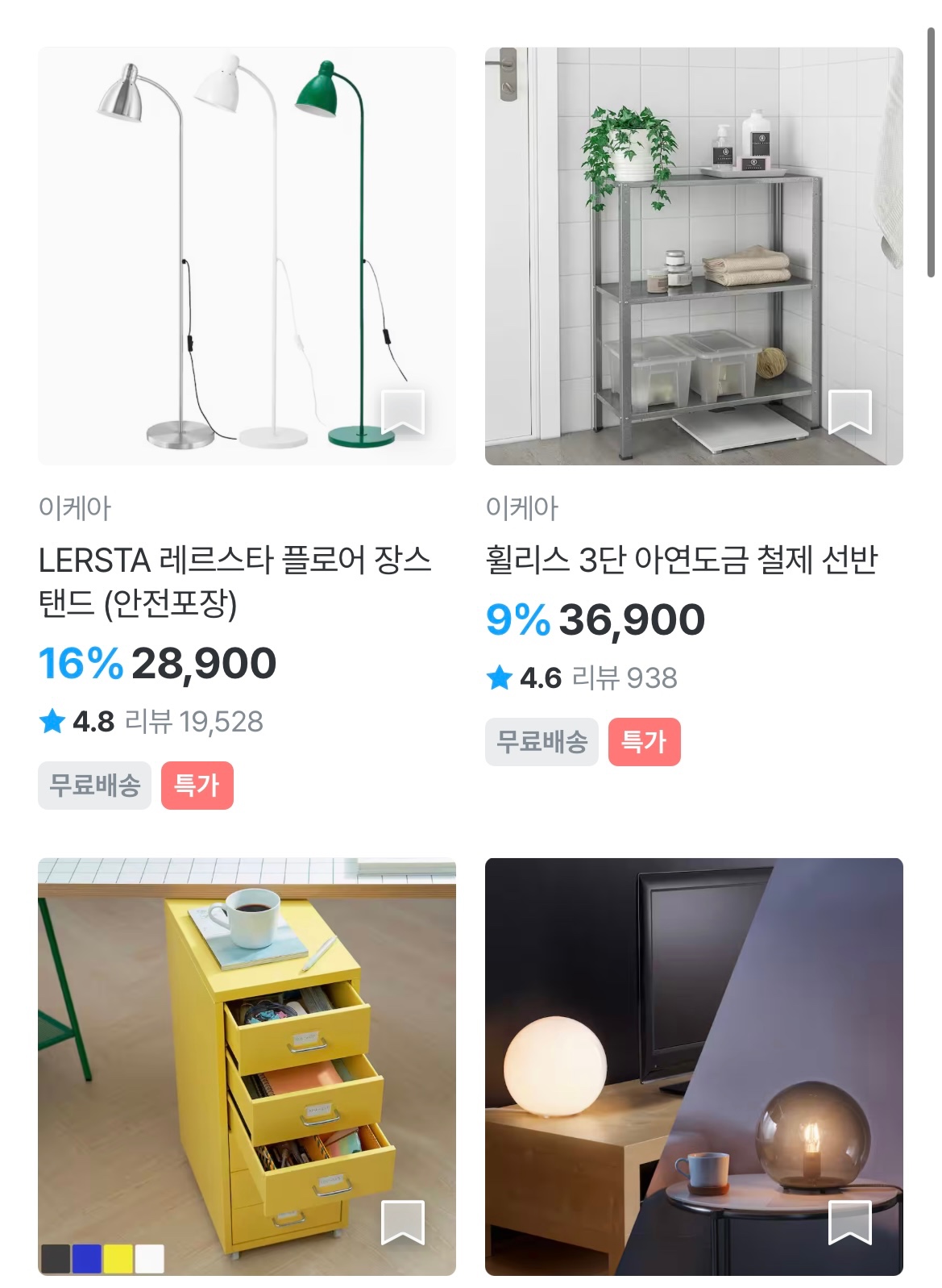 오늘의집 ,쿠팡,유튜브,이케아,테무 등