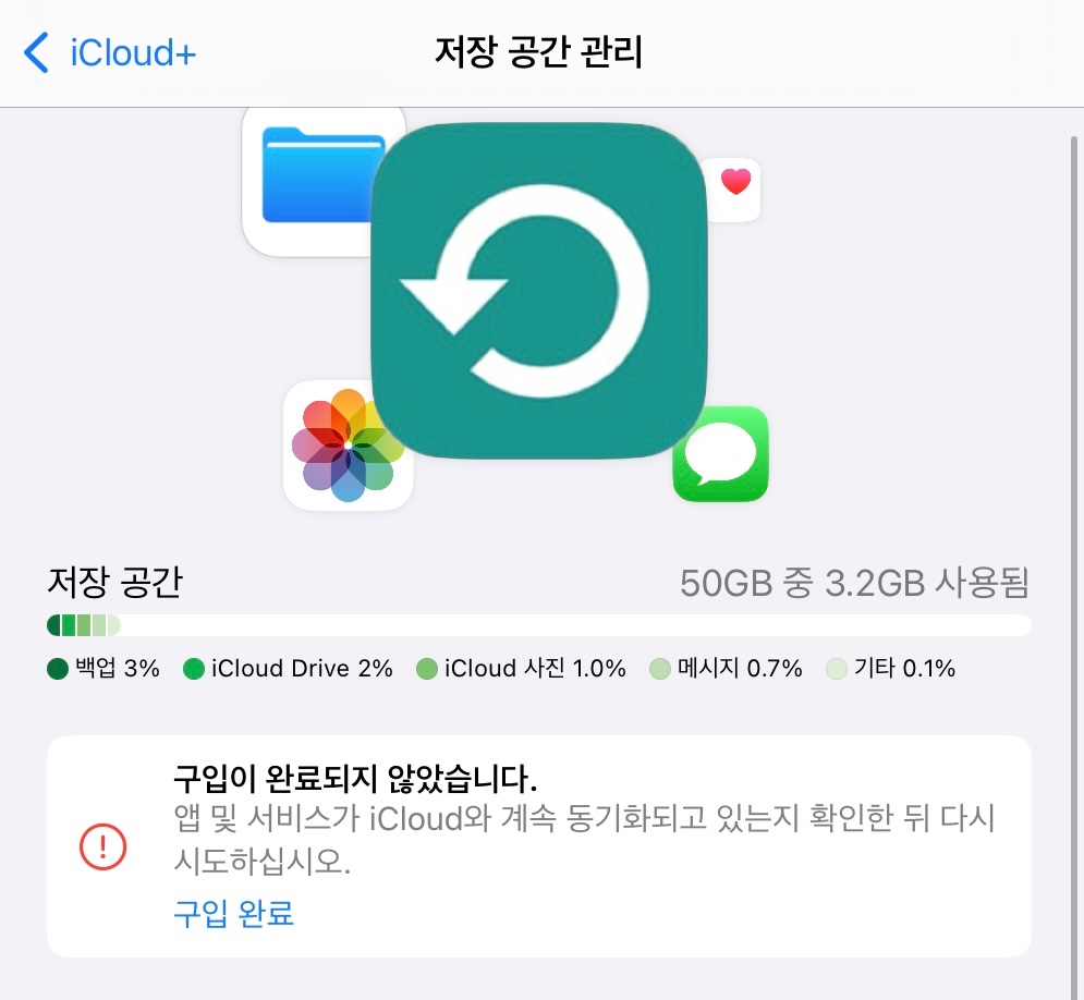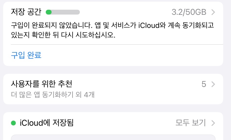 아이클라우드 50GB결제했는데 동기화되 되고 있는데 저렇게 떠요...