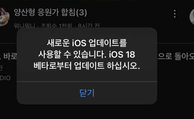 iOS 베타 업데이트 알림이 수시로 표시됨