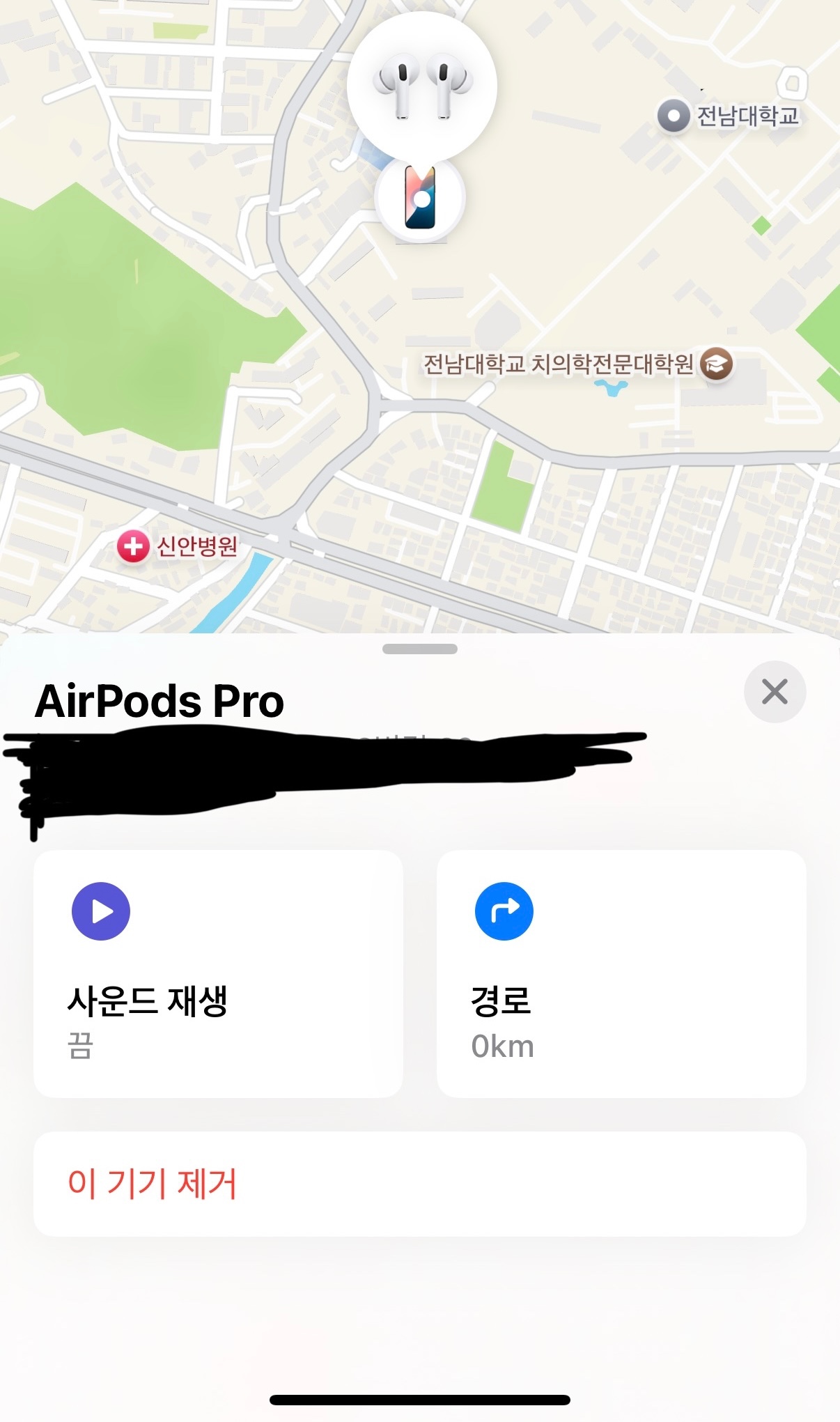 1. 나의찾기 앱 > 해당 AirPods 나의찾기에서 제거