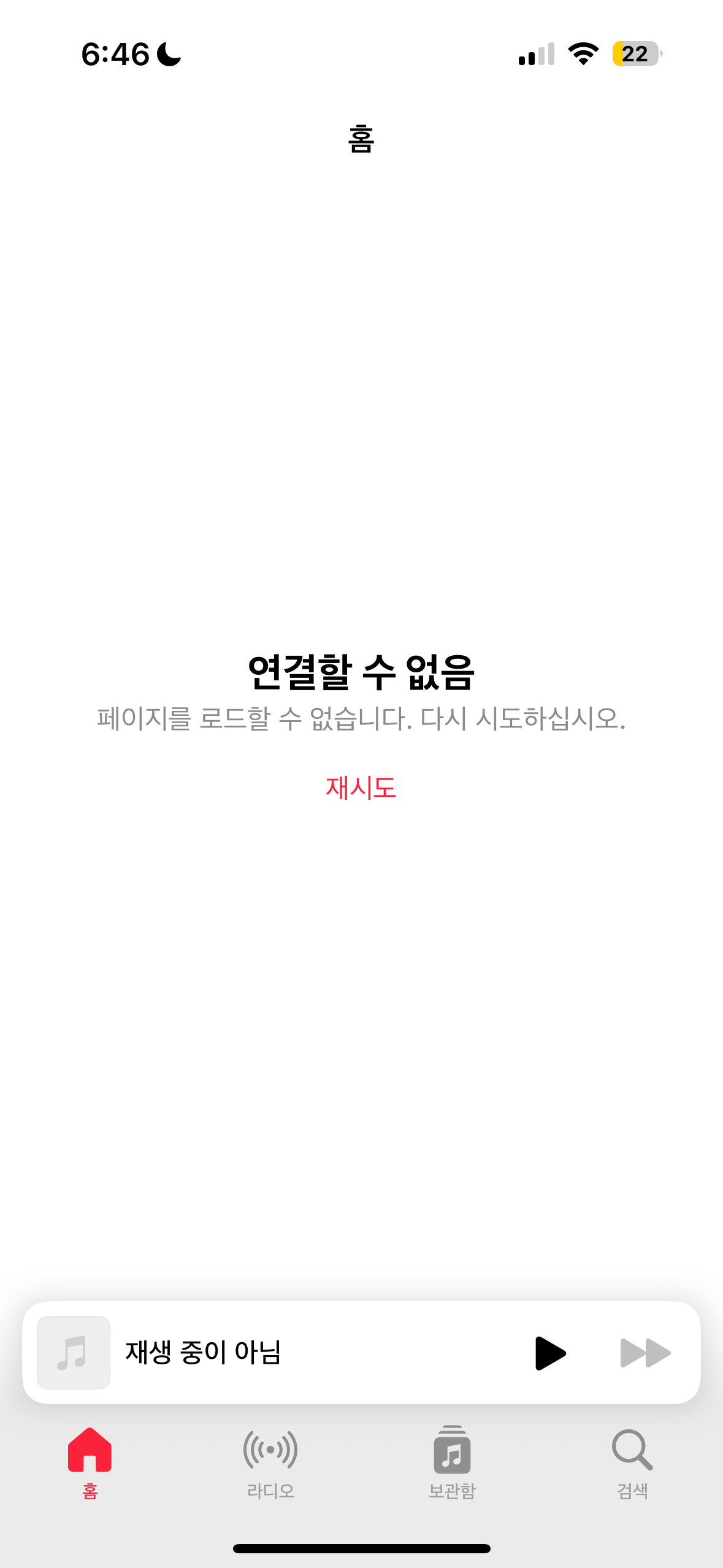 로그인을 한 후 애플뮤직에 접속을 했는데 데 제 플리가 전부 사라지고 페이지의 접근 할 수 없다는 문구만 뜹니다.
