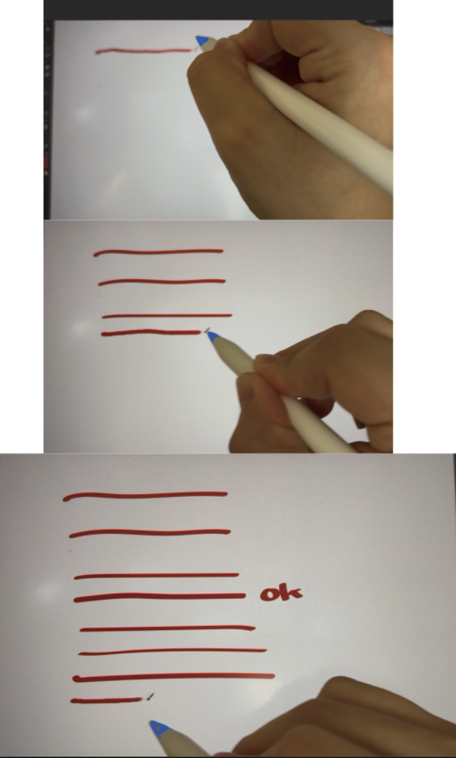 사진 상 펜슬 터치 부분: 파란색 / 실제 패드에서 인식하는 부분: 빨간선