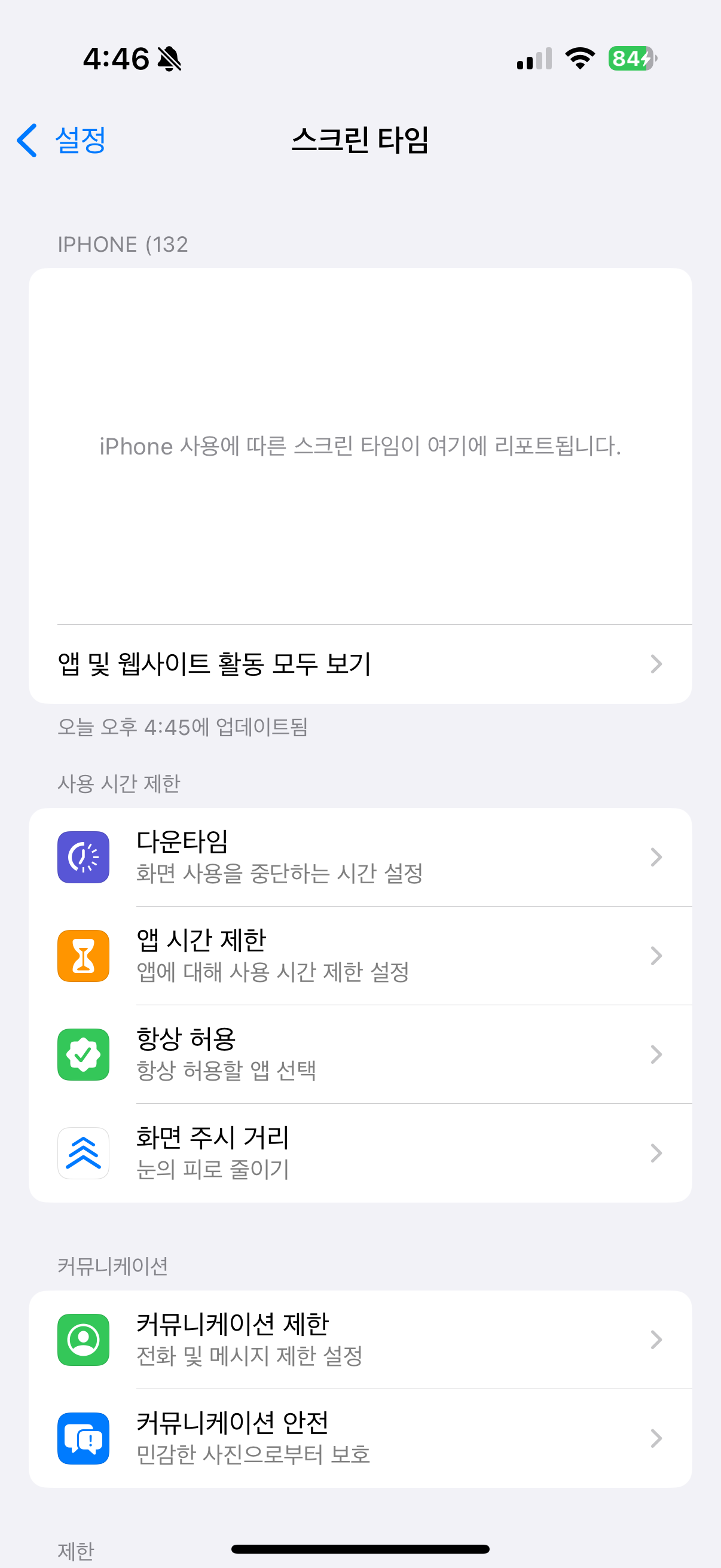 iPhone 16 Pro에서 스크린 타임 리포트가 표시되지 않음