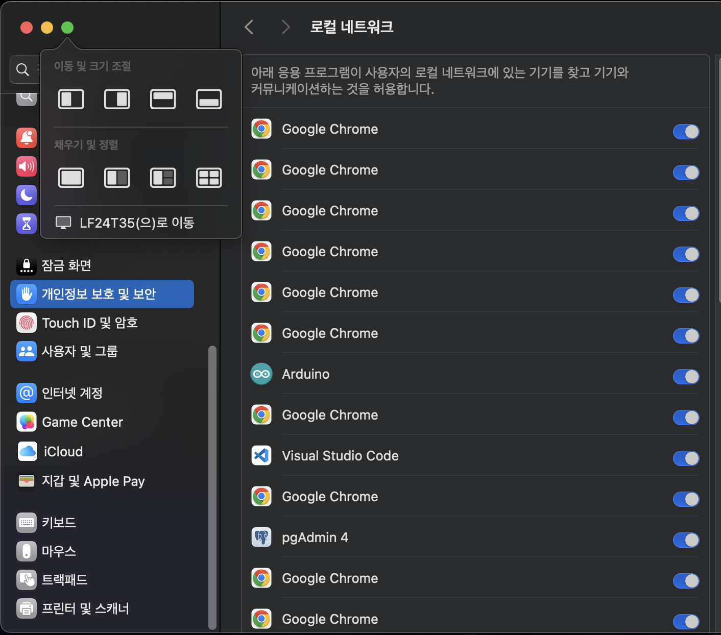 이미지와 같이 로컬 네트워크 권한을 설정하려던 중 같은 이름의 앱이 여러개인걸 확인할 수 있습니다.