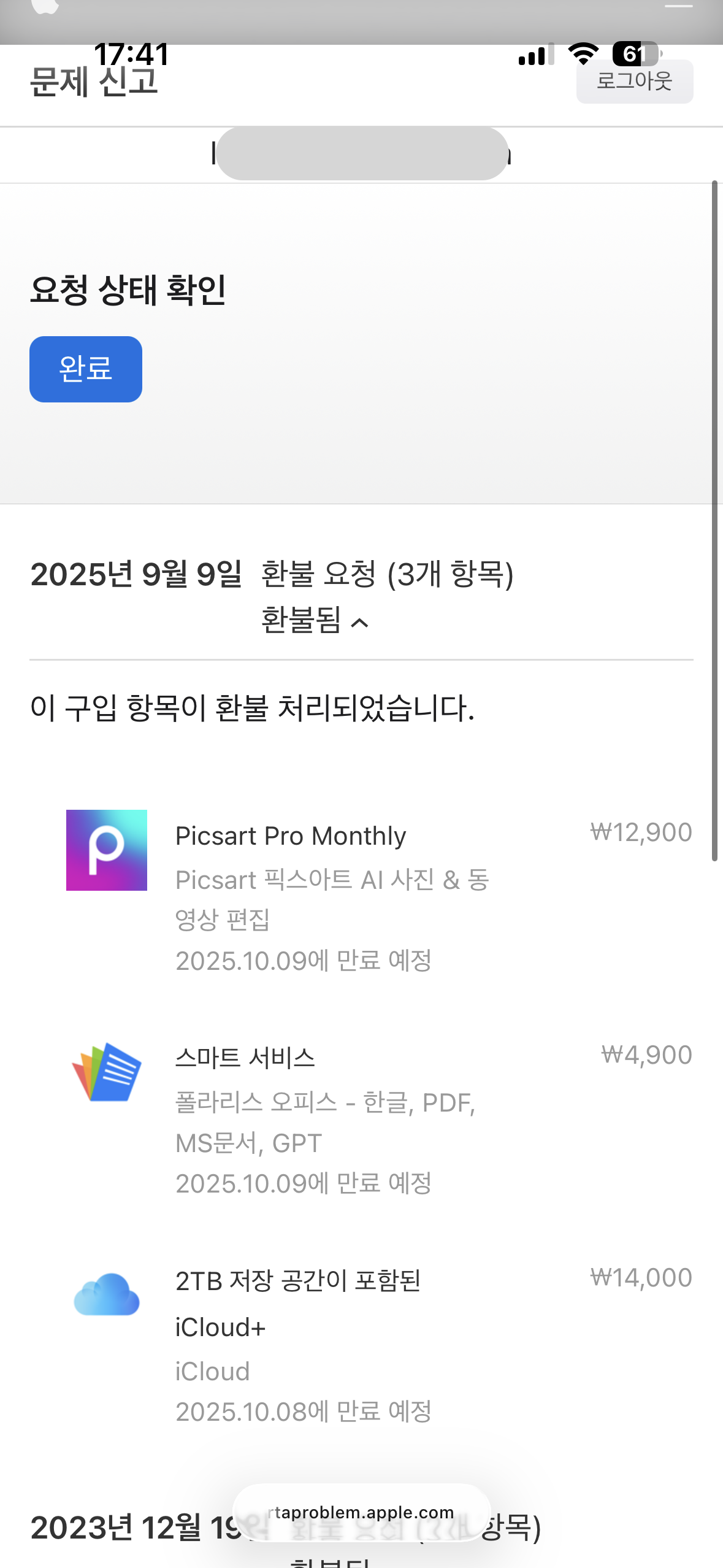 Apple 콘텐츠 환불 승인 후 환급되지 않음