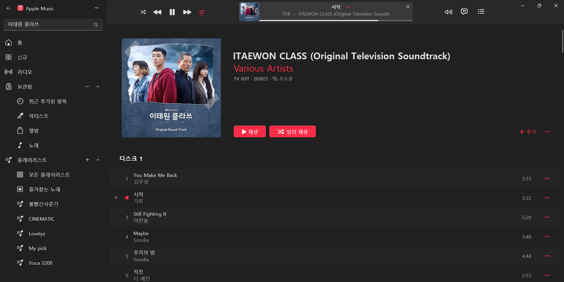 아무 앨범 내 음악을 재생할 때 2번곡을 재생하면 1번곡이 재생 되고, 3번곡을 재생하면 2번곡이 재생 되고, 내가 원하는 음악을 재생하면 이전 음악이 재생이 됩니다. 윈도우도 새로 포맷하고 Apple Music 앱도 수차례 재설치 하였지만 해결이 되지 않습니다.