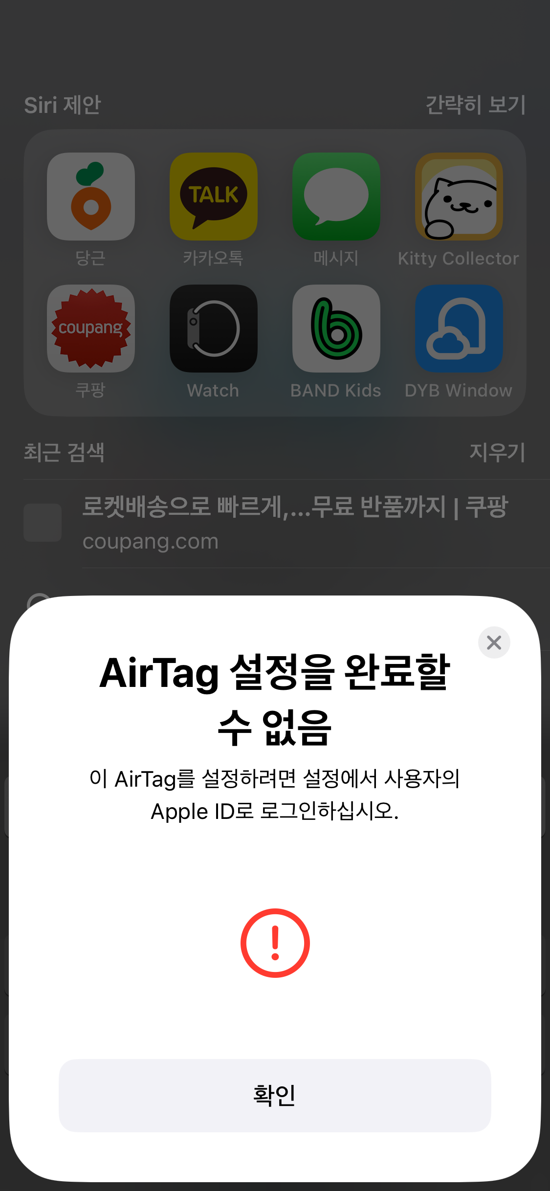 AirTag 설정을 완료할 수 없음 문구 표시됨
