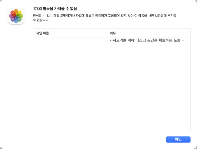 [관리자에 의해 제목이 수정되었습니다.] 기존 제목: 맥 보관함으로 사진 가져오기 오류