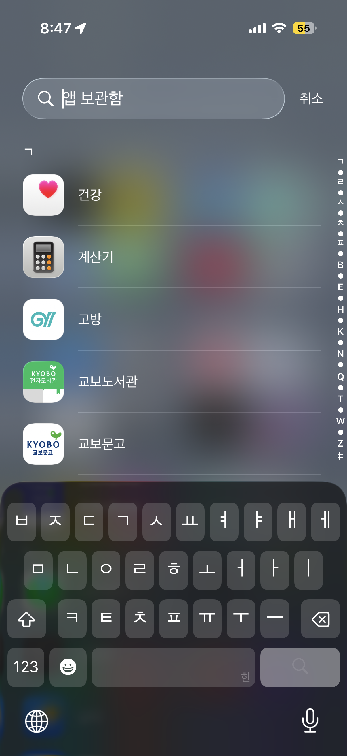 홈화면 검색, 앱 보관함 키보드에만 "라이트 모드"가 적용이 안됩니다.