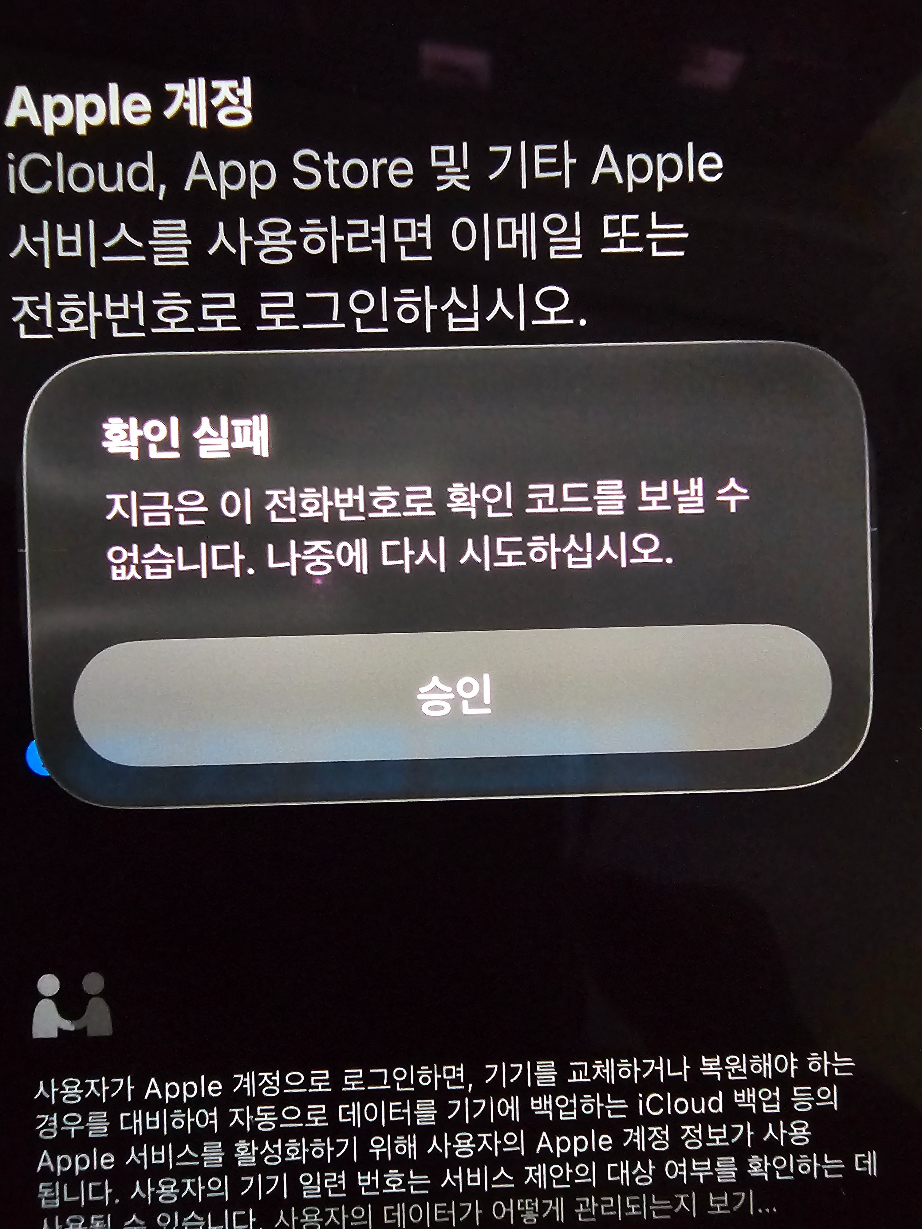 [관리자에 의해 제목이 수정되었습니다.] 기존 제목: 새 기기에서 지금은 이 전화번호로 확인 코드를 보낼 수 없습니다. 라고 로그인이 인 되네요