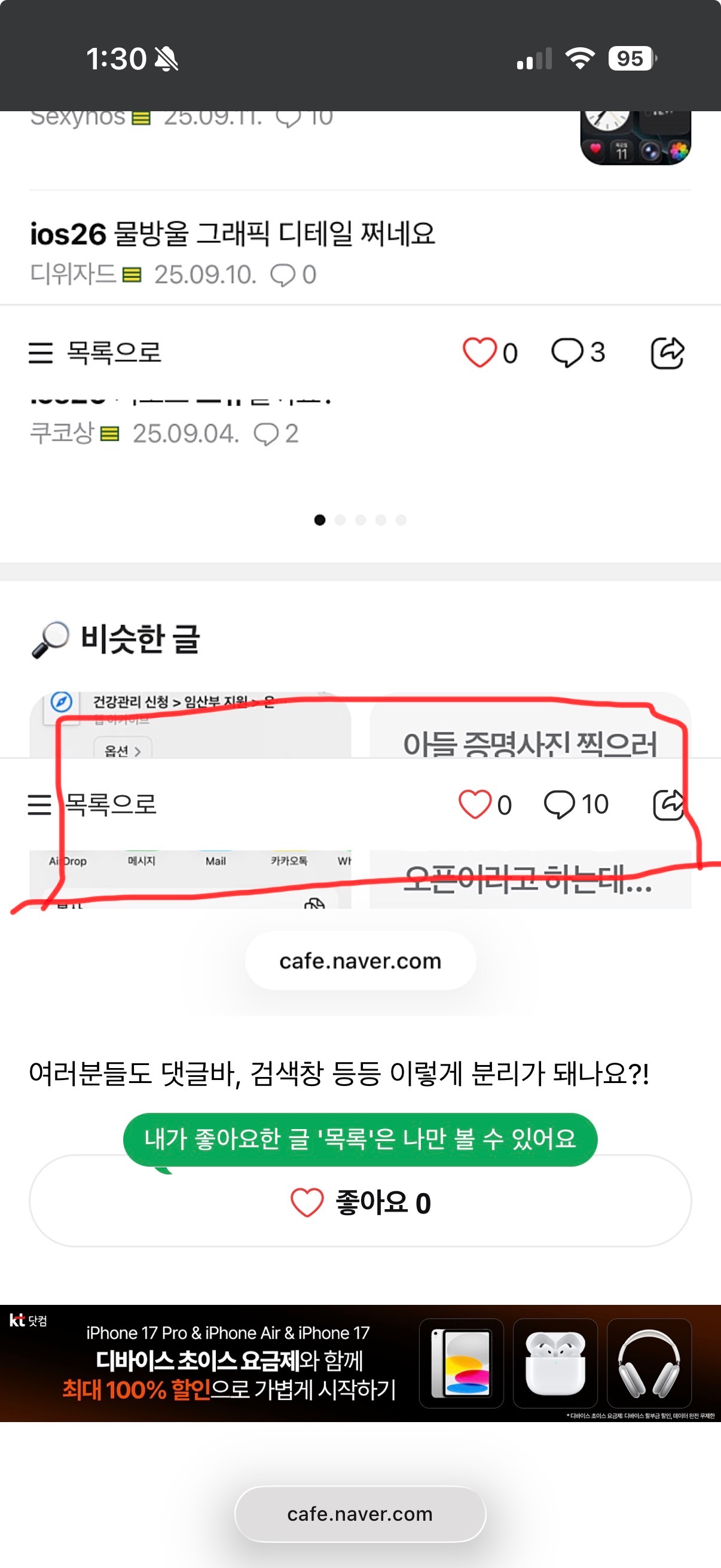 Safari 하단 메뉴 창이 앱 중간에 떠서 화면을 가림