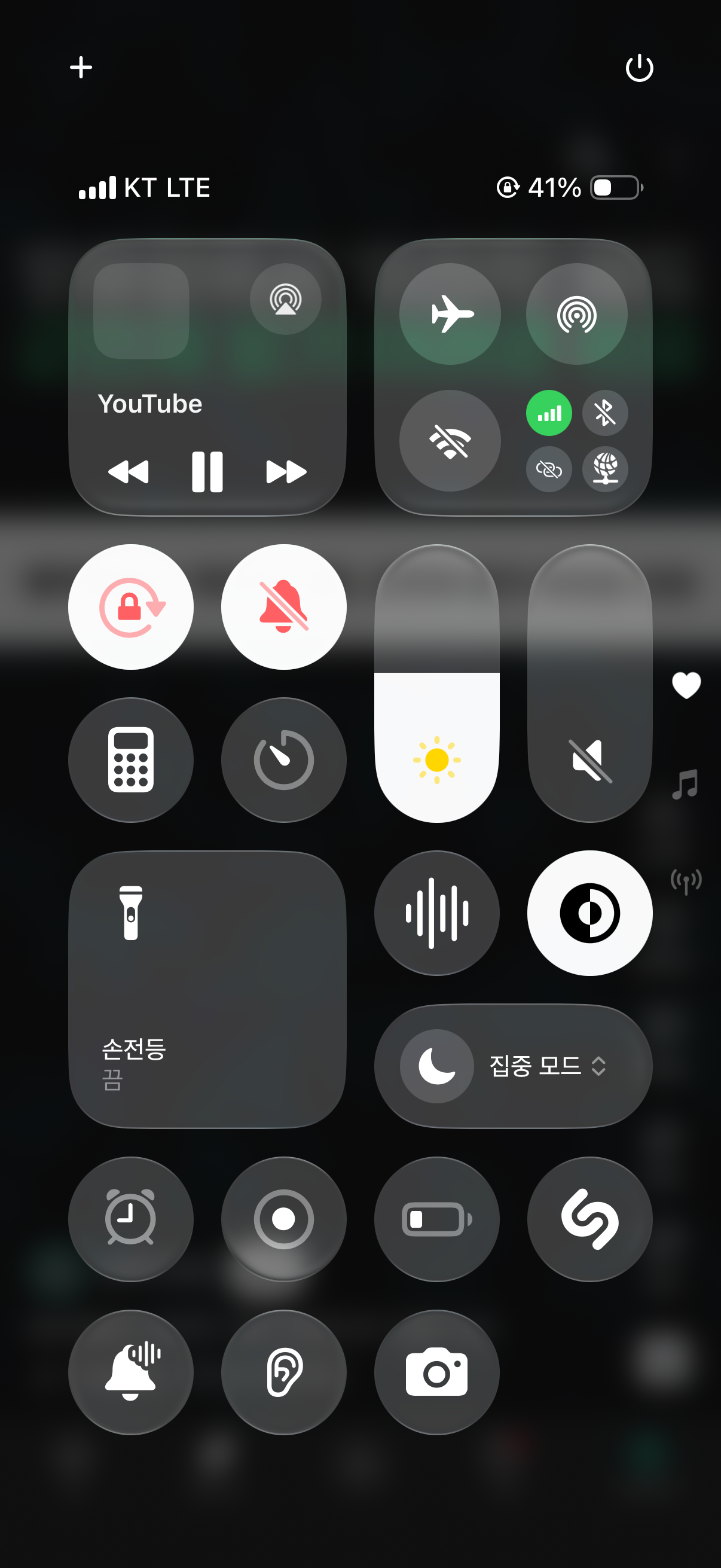 제어센터는 유튜브 실행중에 우측 상단을 아래로 스와이프 하시면 됩니다.