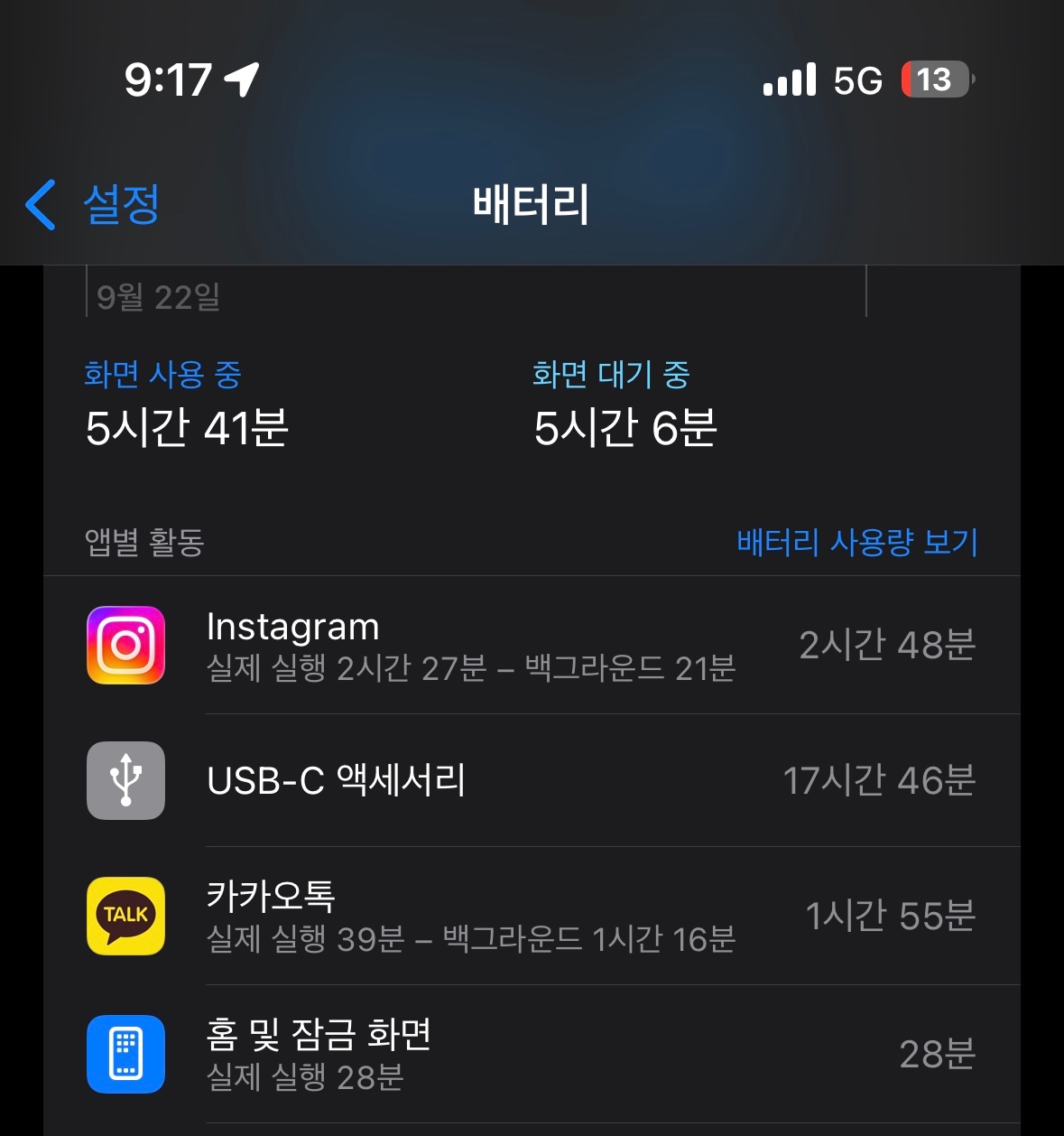 [관리자에 의해 제목이 수정되었습니다.] 기존 제목: 아이폰15프로 배터리사용량usb-c 액세서리