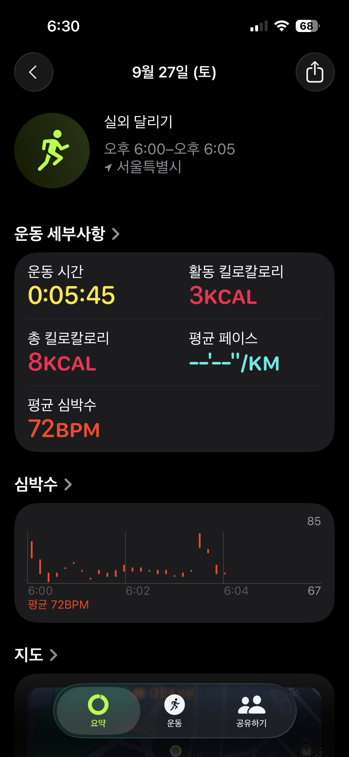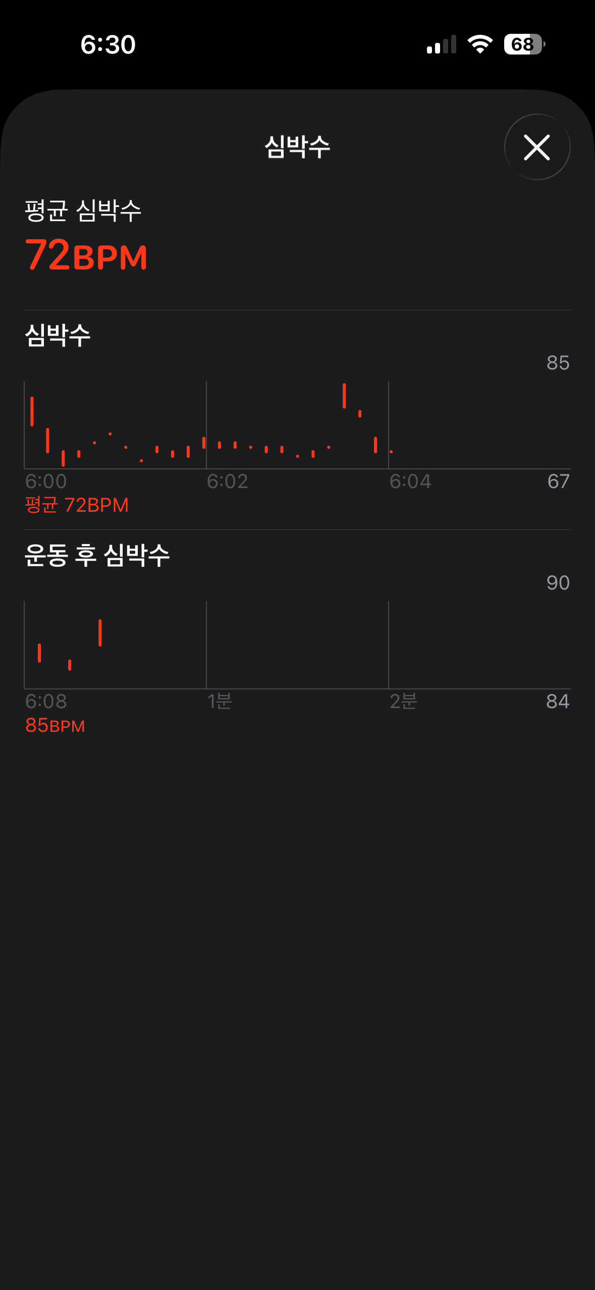 운동을 끄고 나면 심박수 측정이 되긴 되어 있습니다.