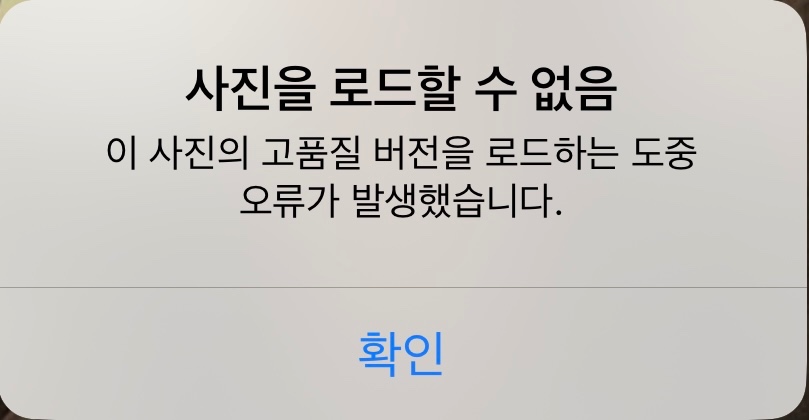 iPhone 사진 앱의 일부 사진만 사진에 느낌표가 뜨고 누르면 사진을 로드할 수 없다고 오류 표시됨