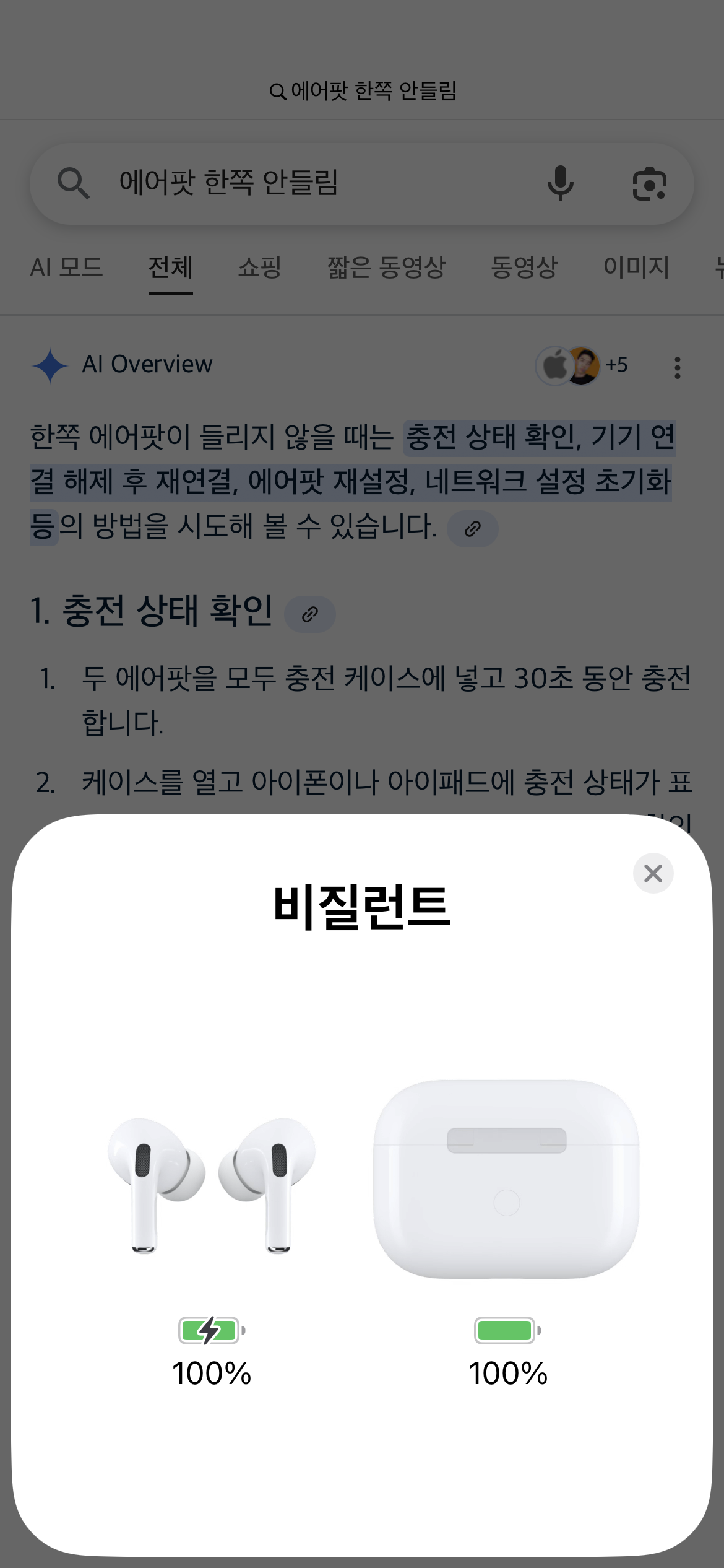 에어팟 프로 1세대 한쪽 소리가 안들림 (행동은 다됌)
