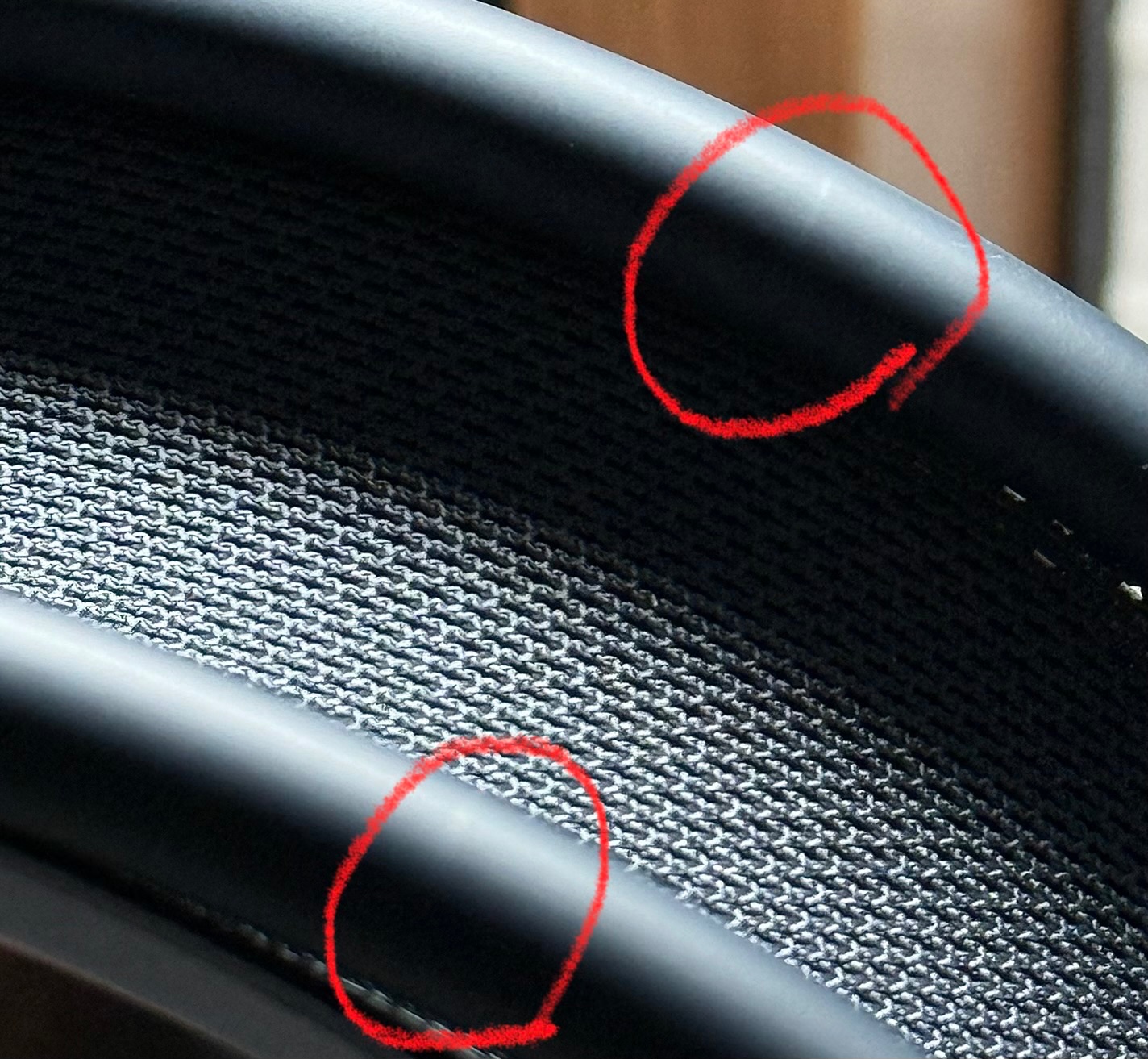 [관리자에 의해 제목이 수정되었습니다.] 기존 제목: 에어팟맥스의 연한 흰색의 선 자국이 보입니다. 불량일까요?