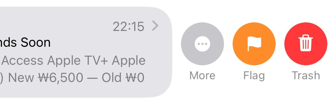 - Apple 자체 앱에서 항목을 좌측으로 쓸어넘겼을 때, 레이블과 아이콘을 함께 표시할지 혹은 아이콘만 표시할지를 한가지만 정해 통일해 주시면 좋겠습니다.