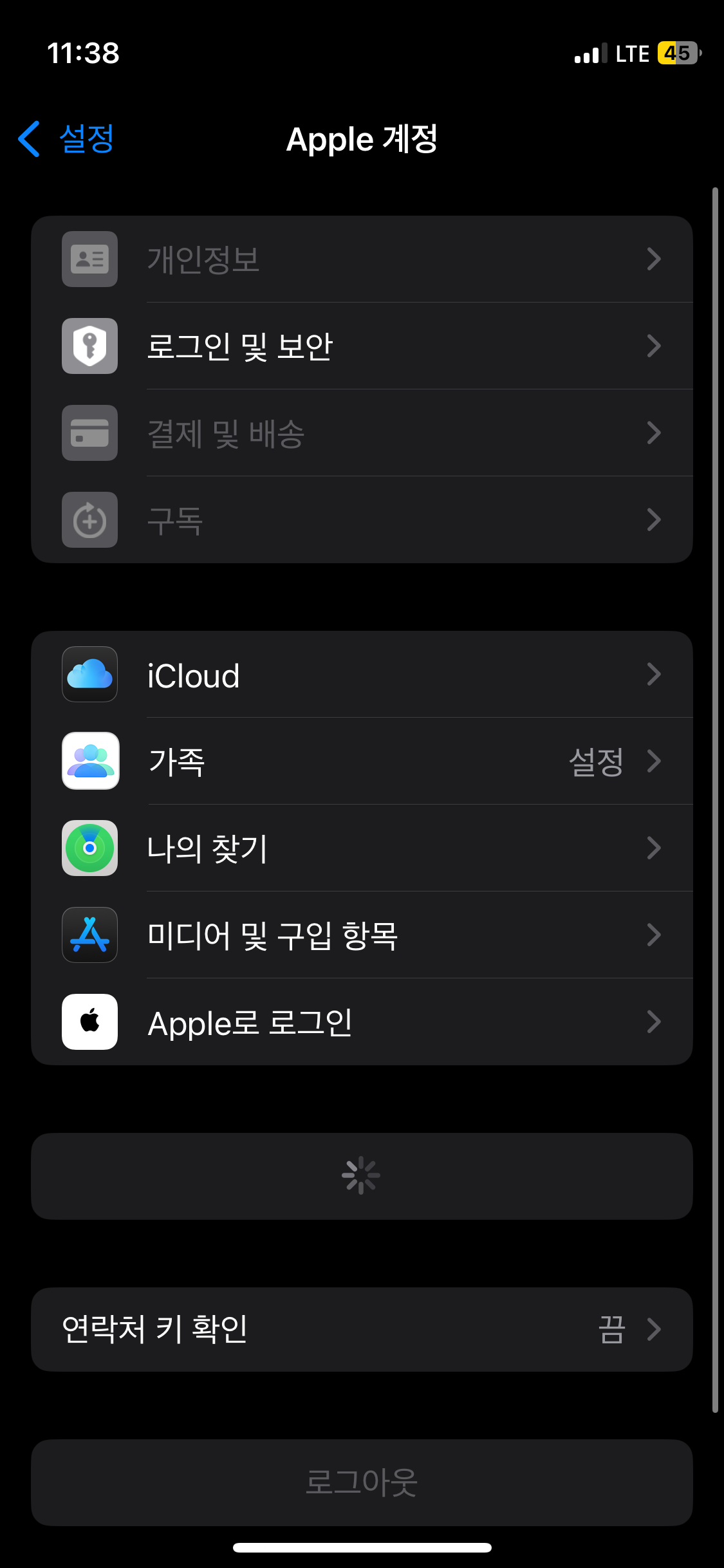apple 계정 원인을 모르겠습니다