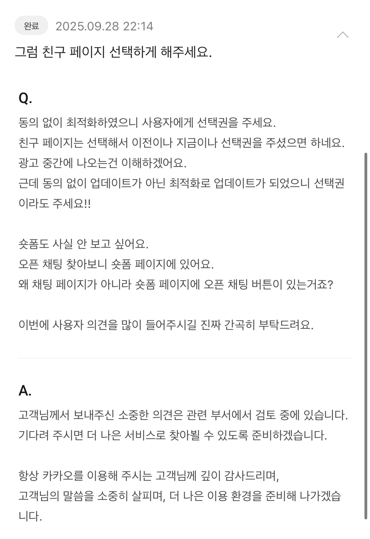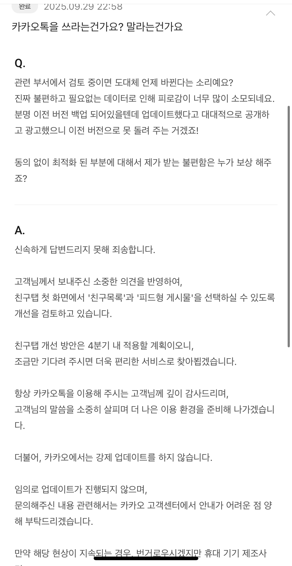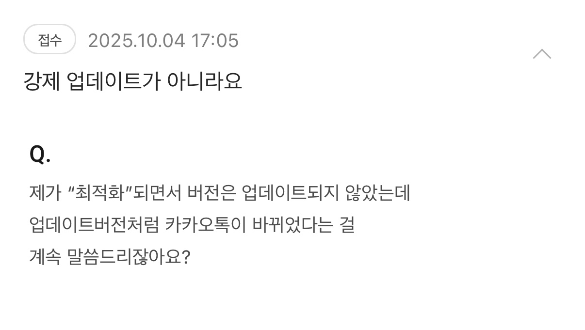 최근 카카오톡 업데이트 이슈로 인한 피해자 중 하나입니다.