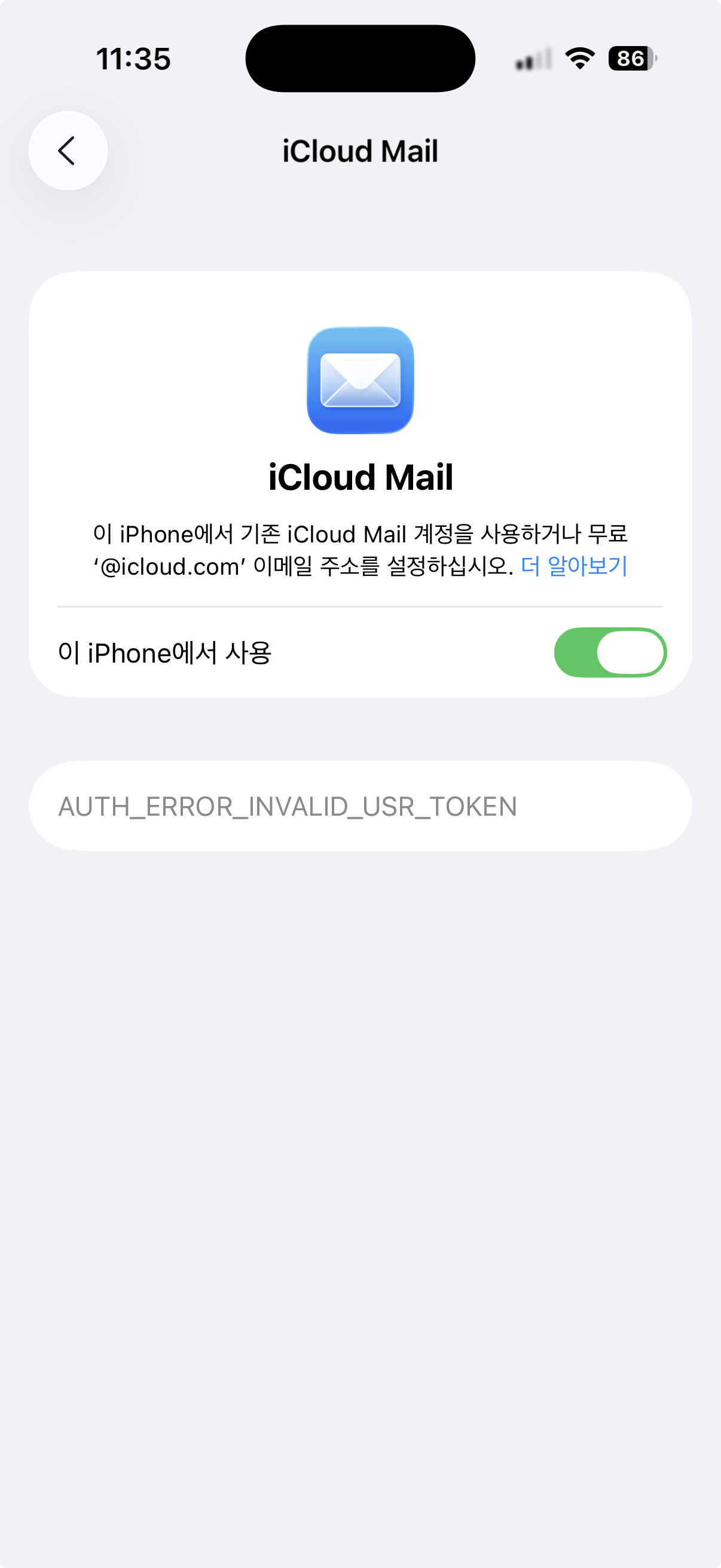 아이클라우드 메일 오류 (Auth_Error_Invalid_Token)