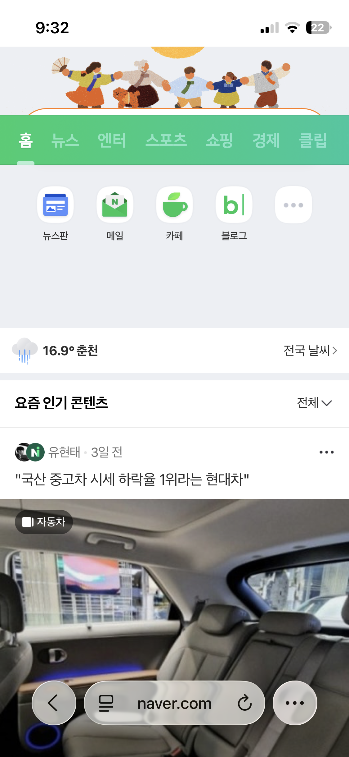 사파리 네이버 웹 화면입니다.