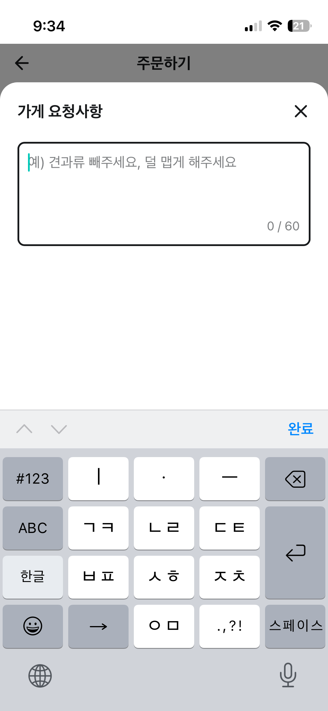 아이폰 자체 키보드창이나 선택창이 뜬 이후