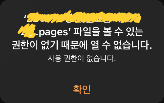파일을 볼 수 있는 권한이 없기 때문에 열 수 없습니다. 라고 나옵니다.