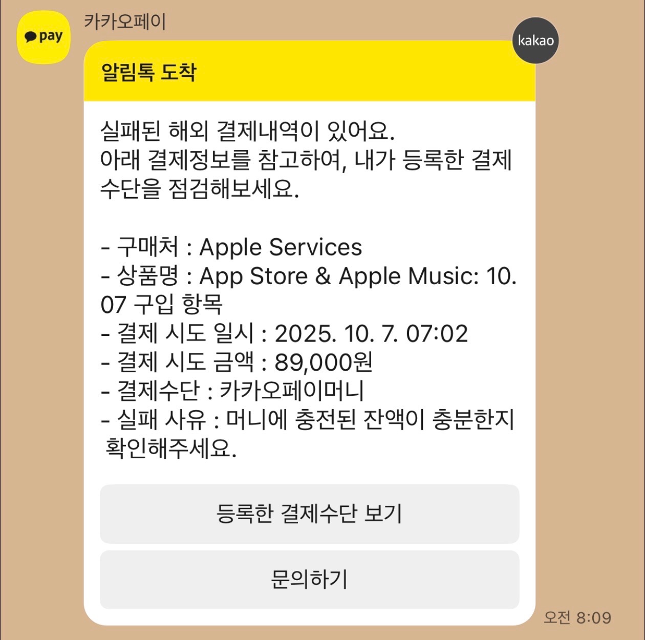 Apple에서 청구 시도되고 있는 알 수 없는 콘텐츠 주문 건 문의