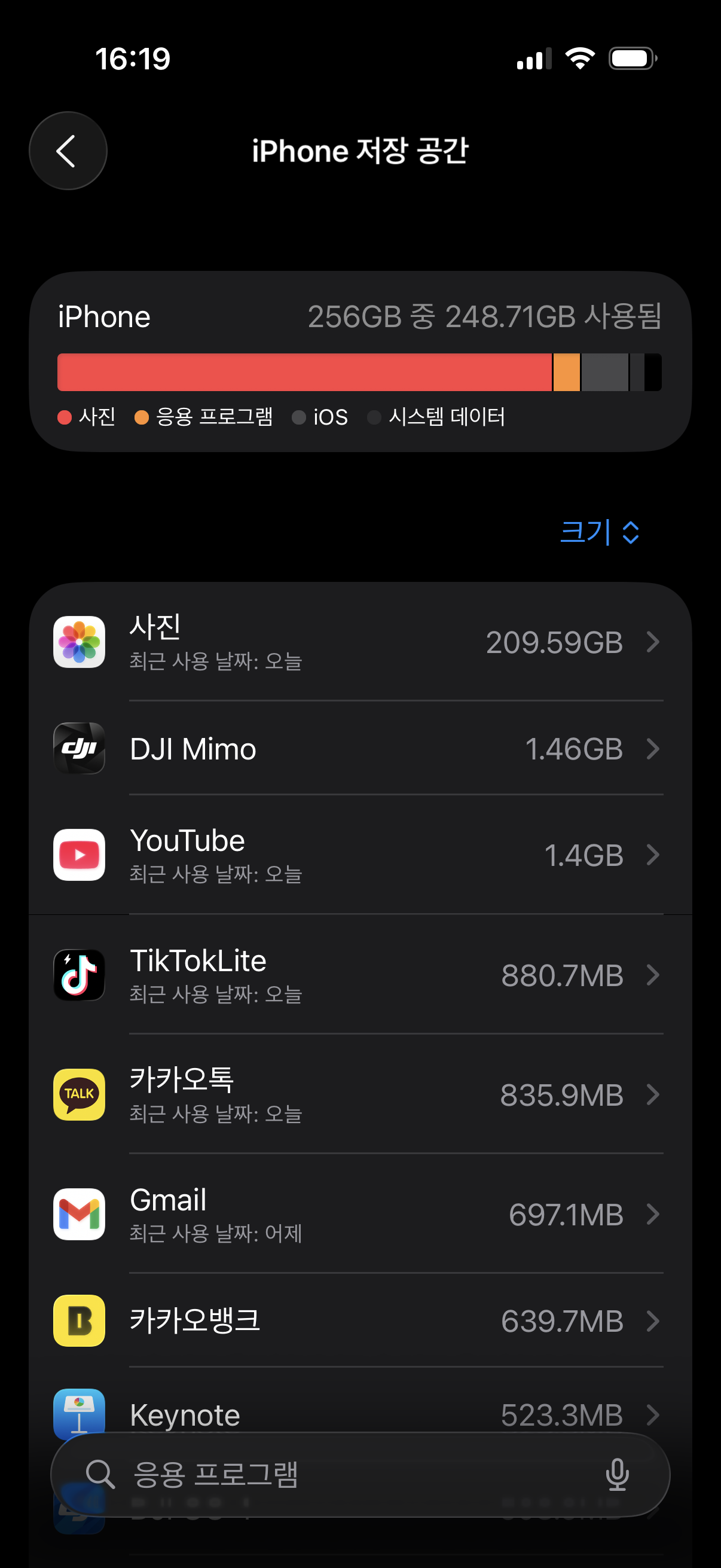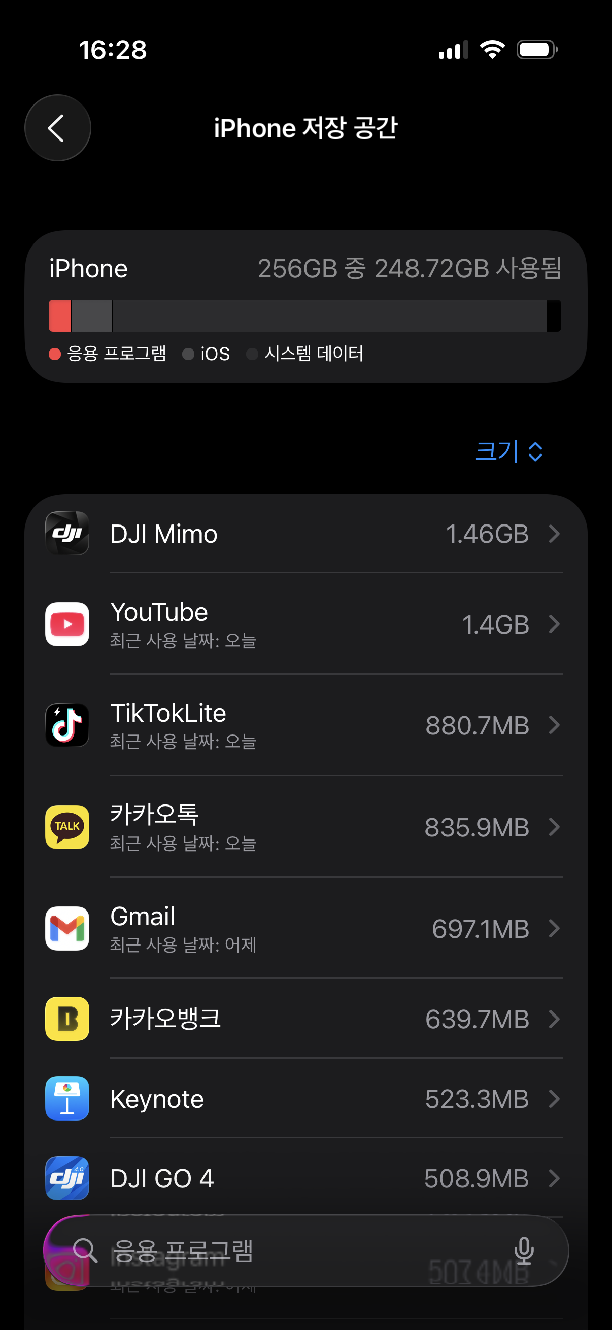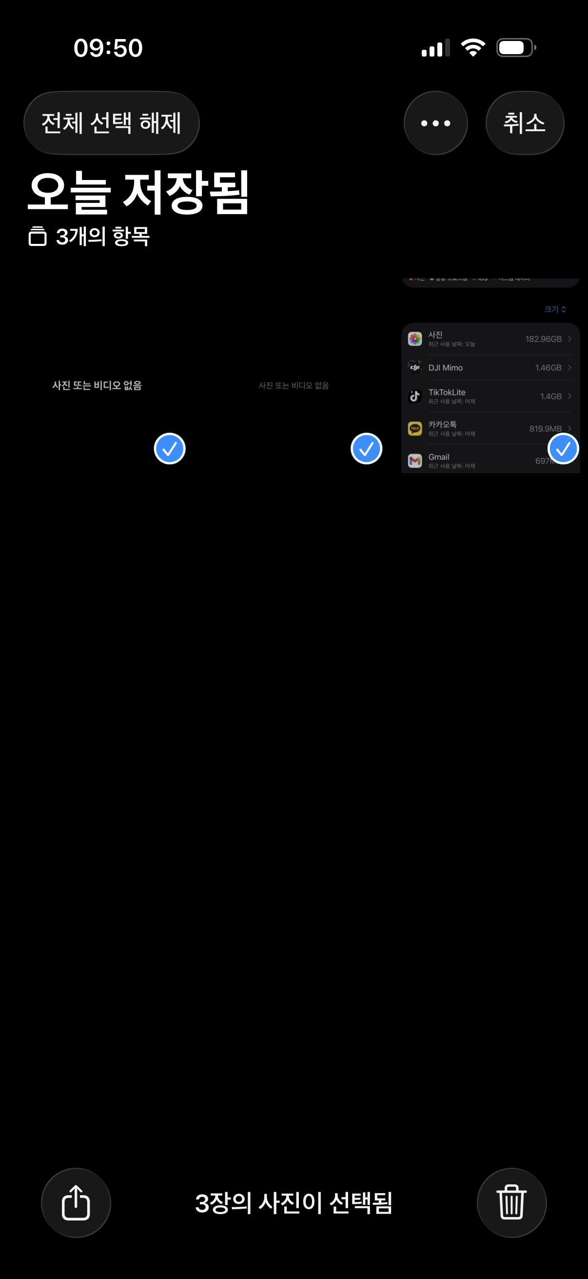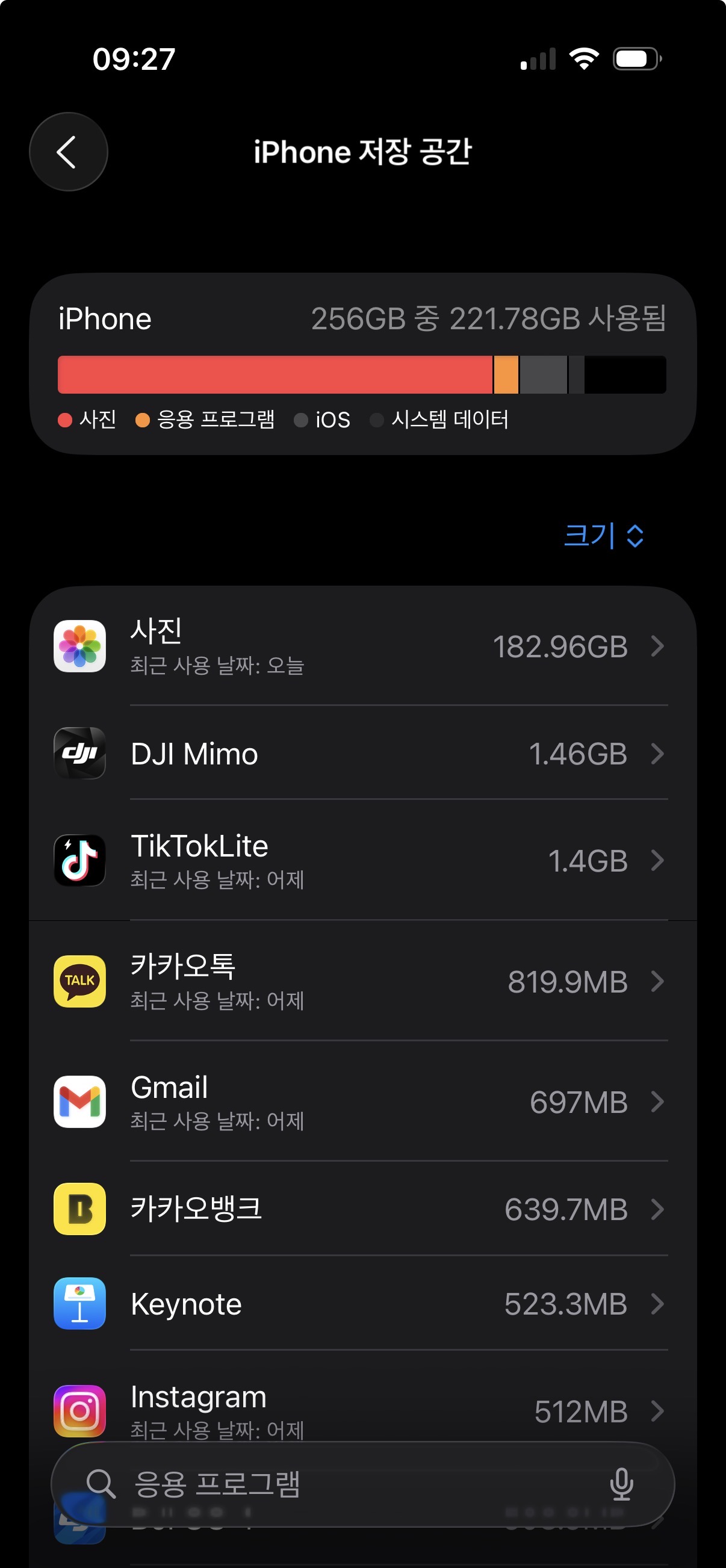 아이폰17프로의 사진을 삭제및 최근삭제한 항목도 삭제후 사용용량이 변화가 없다