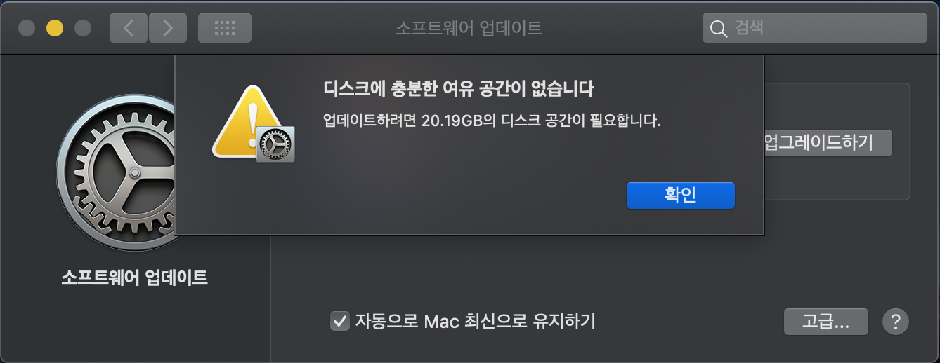 iCloud+ 저장 공간을 구입했음에도 저장 공간 부족으로 macOS를 업그레이드하지 못함