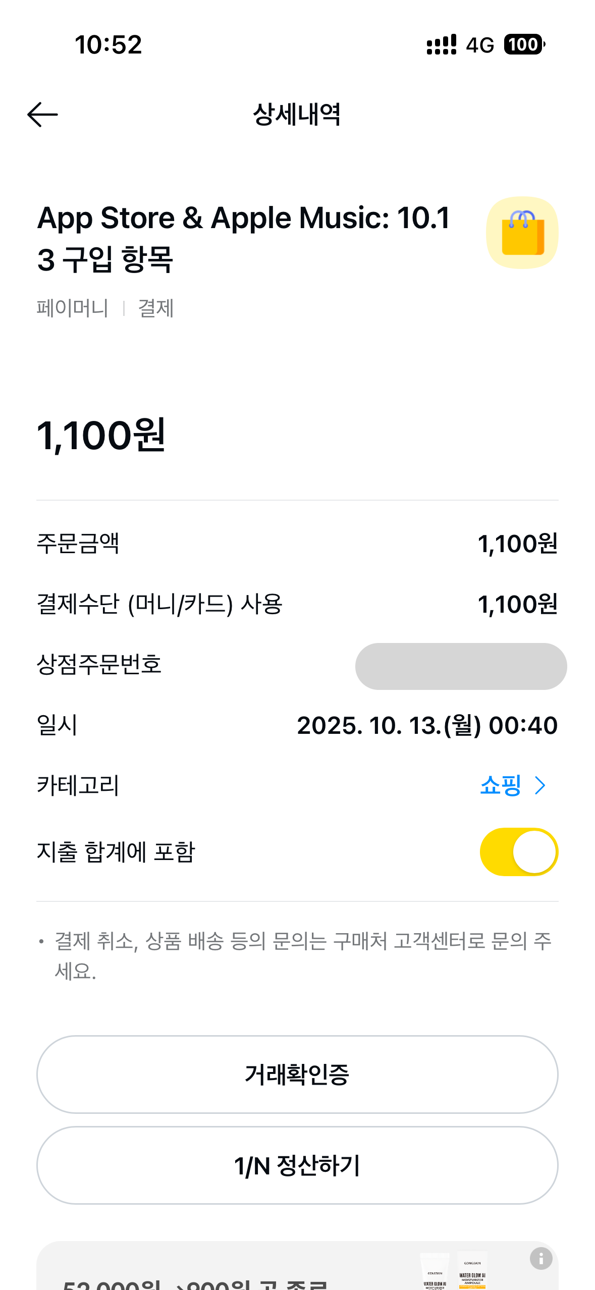 결제를 하지 않았고 구매내역에도 없는데 아래처럼 1,100원이 결제가 되었습니다