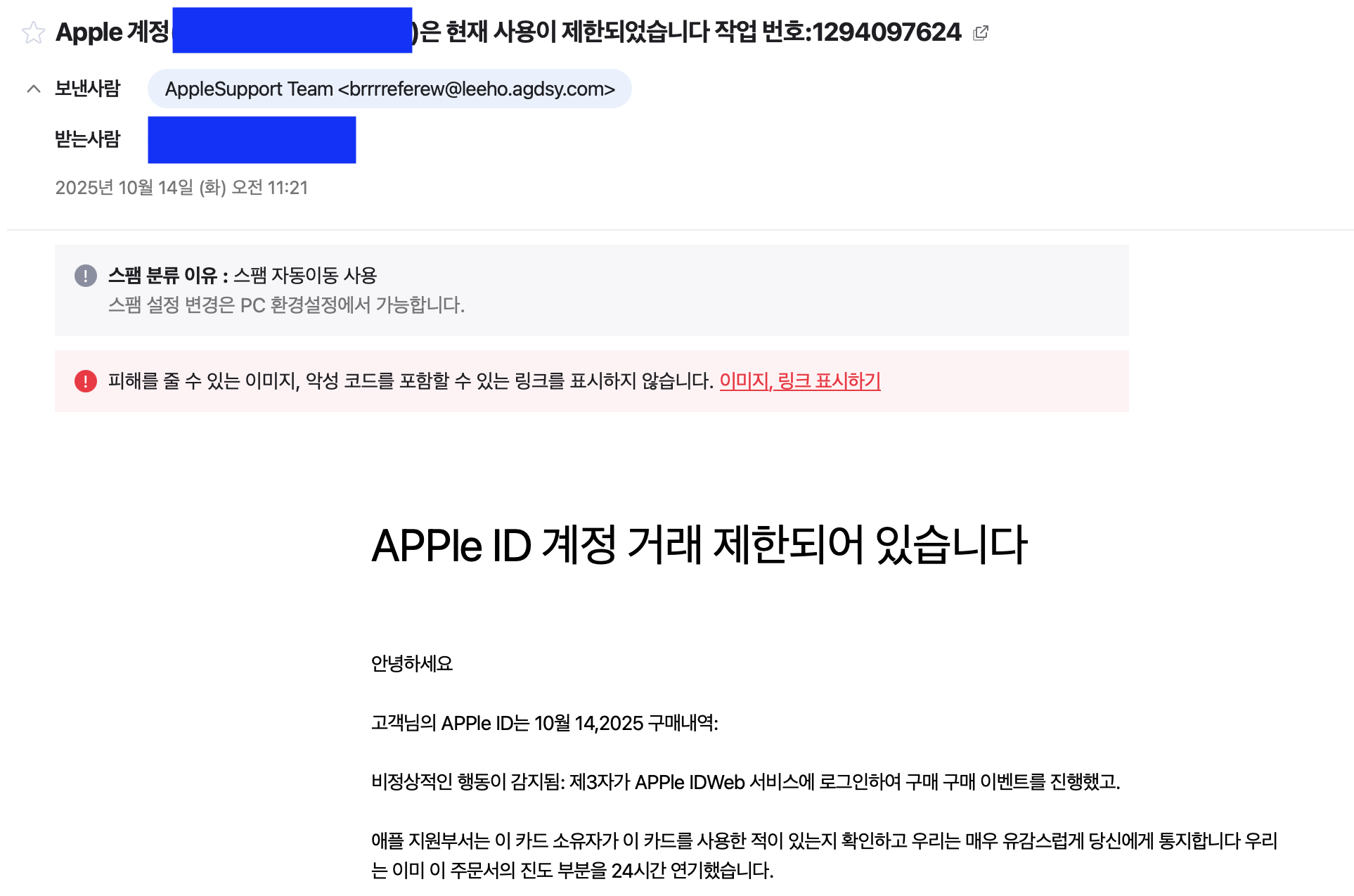 Apple ID 계정 거래 제한 메일이 왔습니다.