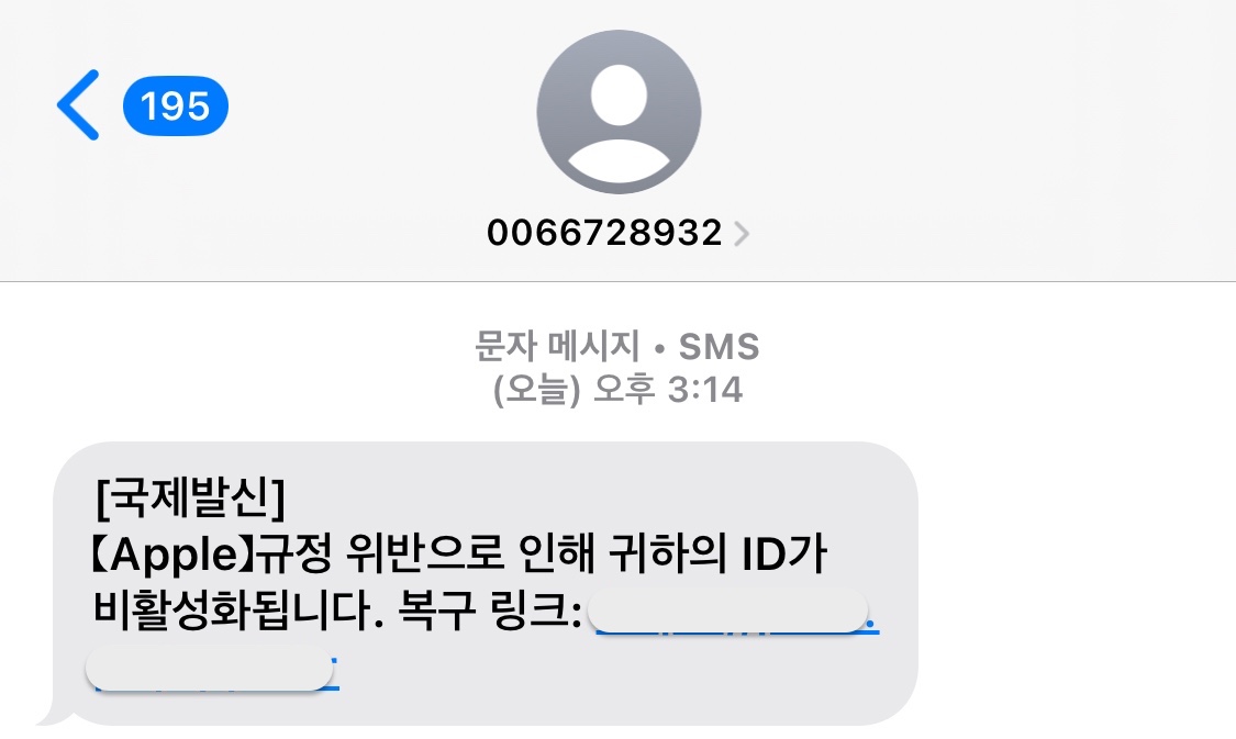 Apple을 사칭한 피싱 메시지인지 확인 문의